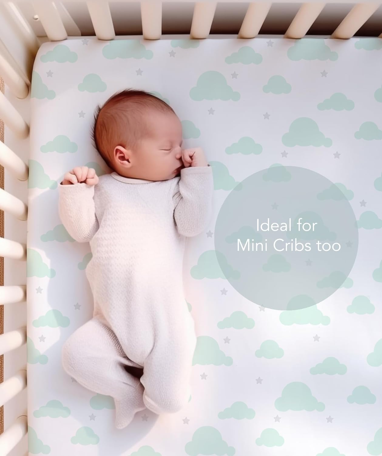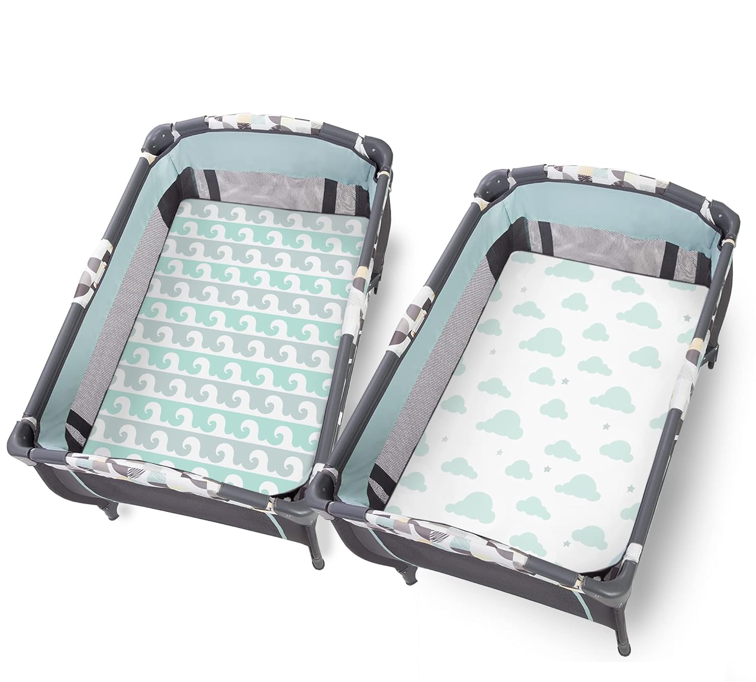 CAMBRIA BABY 100% ORGANIC COTTON FITTED SHEETS. A 2-pack of fitted sheets for Pack ‘n Play, Graco and other portable cribs. It also fits snugly on the playard alone. The neutral colored elephant and bubble patterns go well in any baby’s nursery.