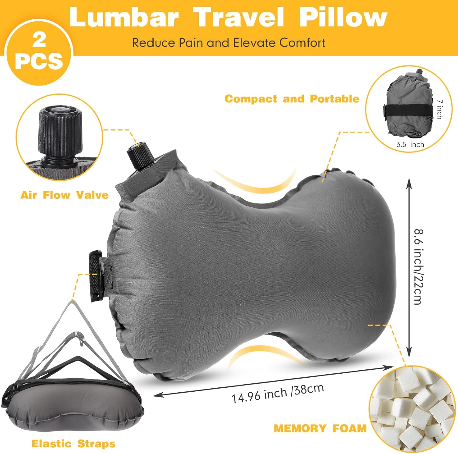 Lumbar Travel Pillow: when it comes to long airplane flights or extended car drives, our 2 inflatable travel pillows for airplanes are your good travel companions; They fit car, subway, train, and truck seats, offering neck and back support for airplane seats, ensuring your comfort and restfulness throughout your journey