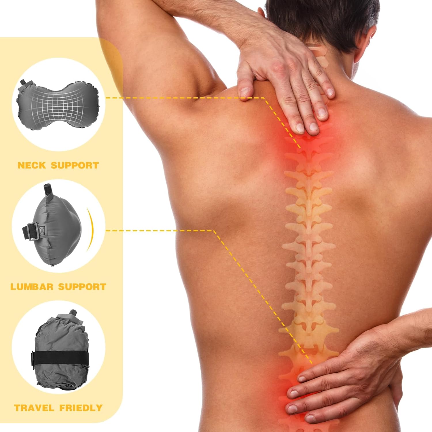 Versatile Usage: from camping to hiking, backpacking, office use, bus travel, sleep, home use, and hotel use, our inflatable lumbar supports are versatile enough to suit a wide range of occasions; Their practical design and functionality make them a must have travel accessory for comfort on travel