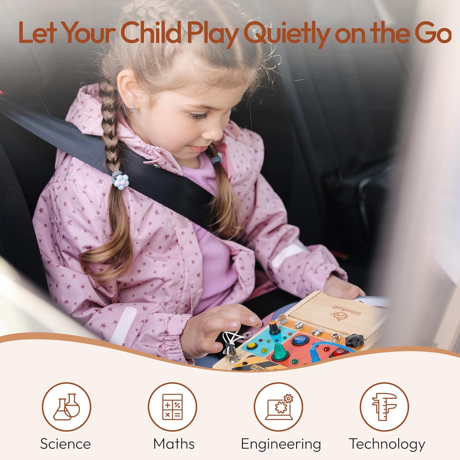 Easy to Carry: This busy board with LED light is designed with storage space that can hold all the accessories, making it easy to carry. Children can easily play whether at home, school, or while traveling, keeping them busy
