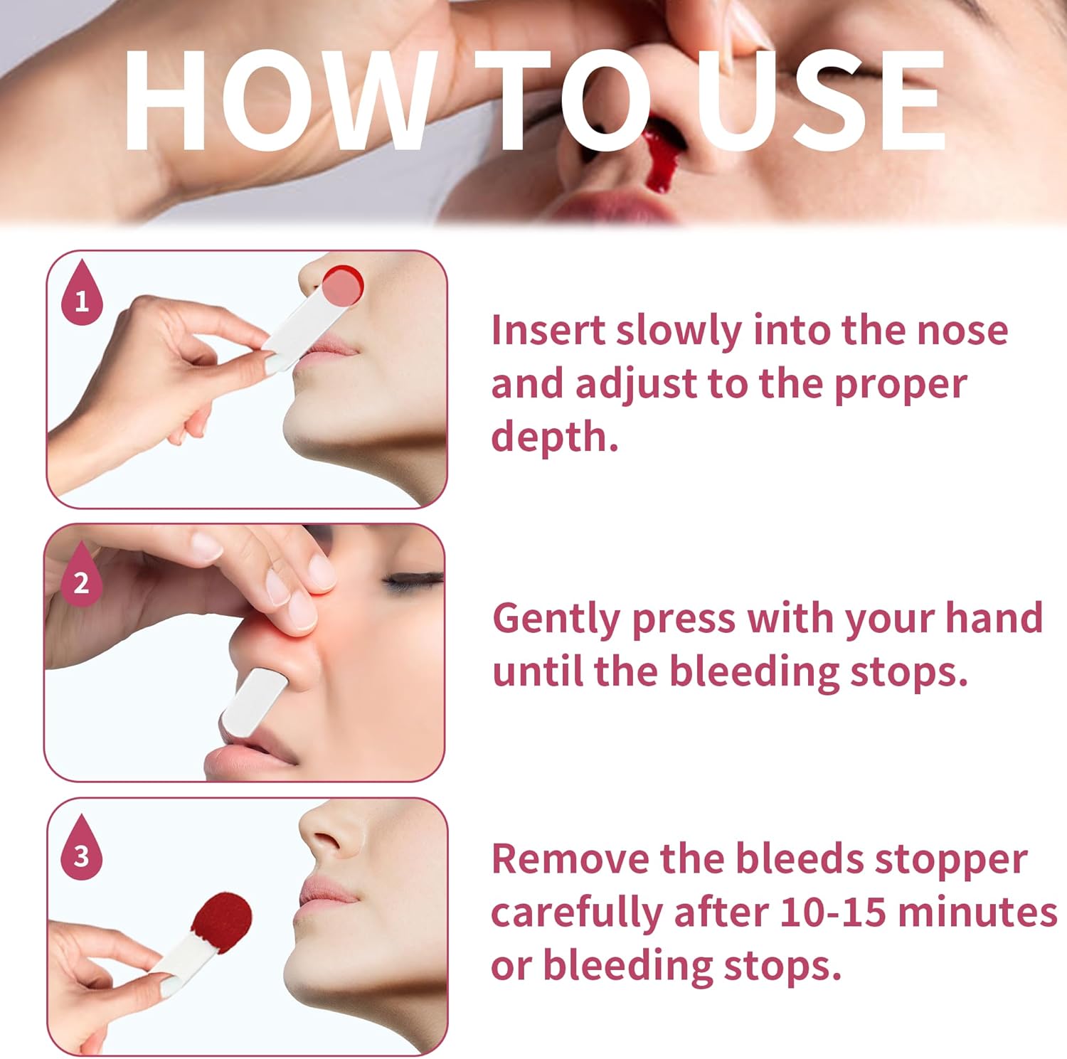 Nose bleed stoppers are indicated foradults,athletes, seniors, allergic rhinitisHHTand other bleeding disorders.