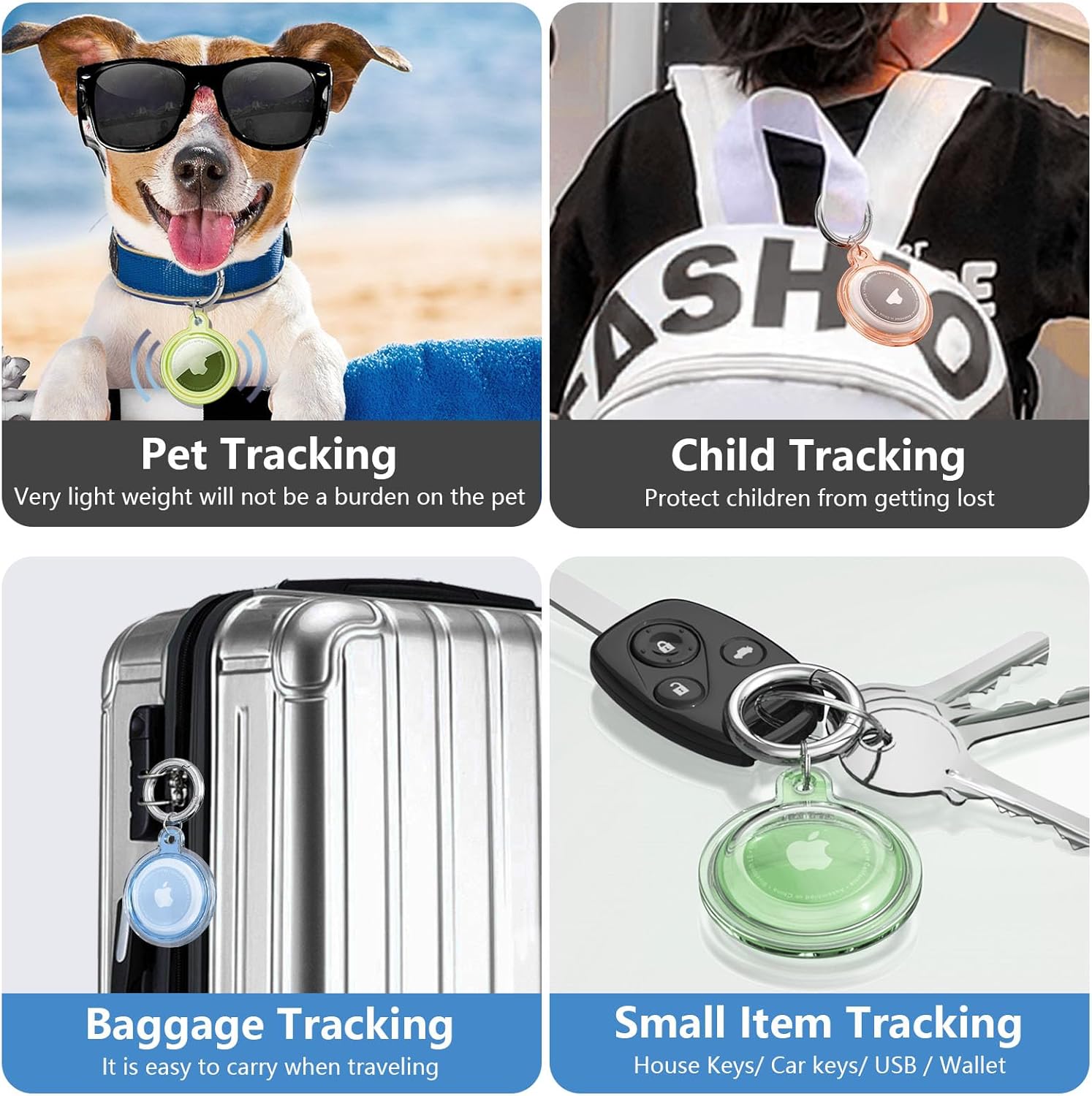 Portable Keychain: This Air Tag Holder comes with a keychain.You can easily attach the Airtag keychain to any item such as car keys, dog collars,child’s backpacks, luggage or other valuables, no longer worry about lost items