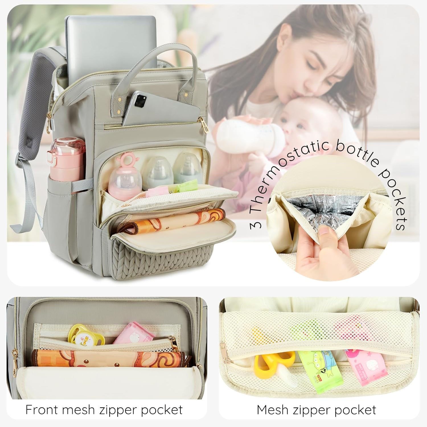 - ✅ 14 practical pockets + 3 compartments for bottles, diapers, toys, laptops, keys, and wallets.