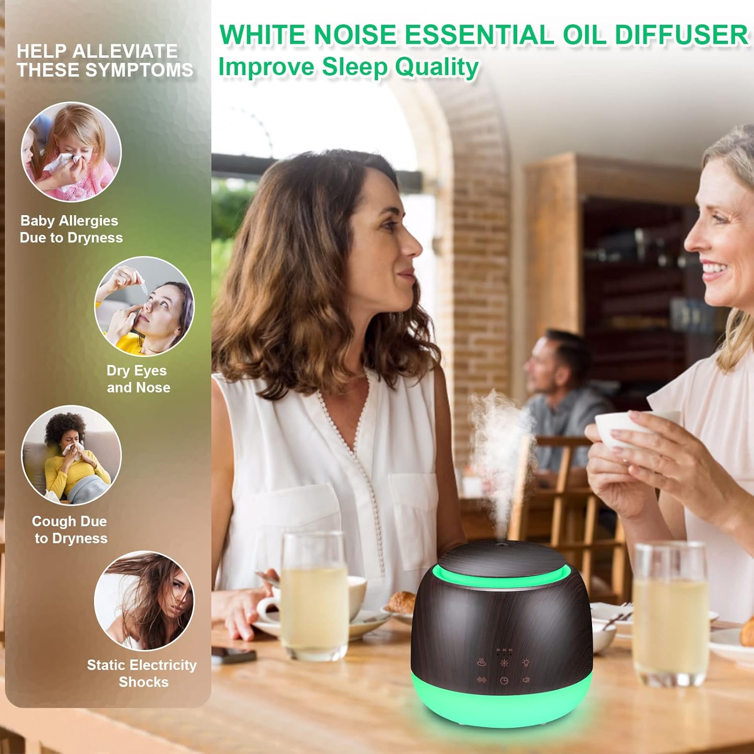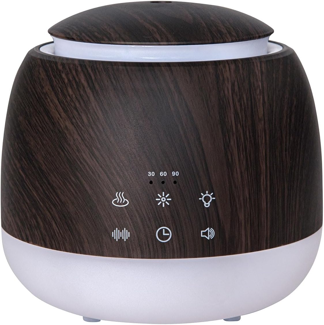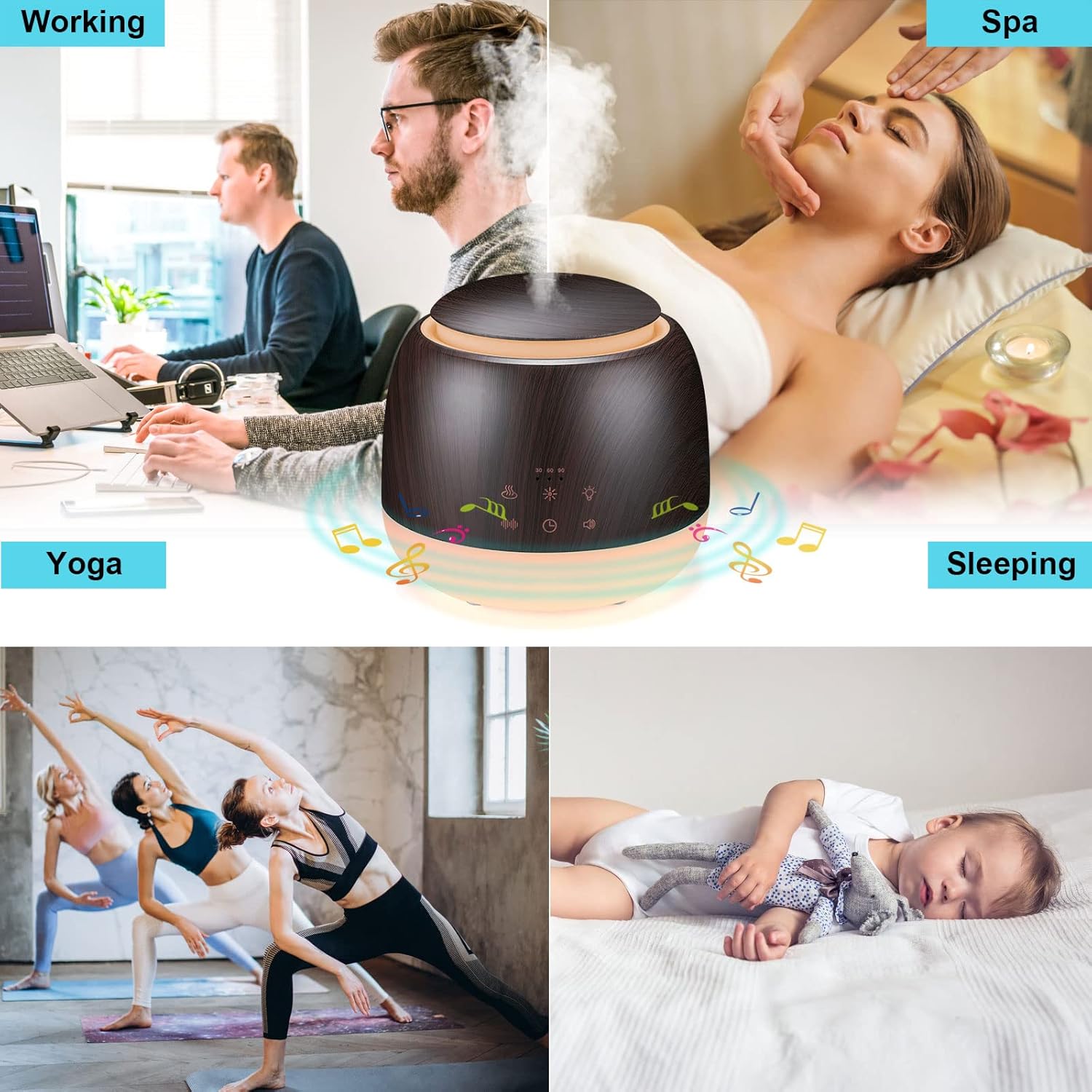 Aromatherapy Diffuser & White Noise Machine Combines 10 Relaxing Sounds,7 Color LED Light,5 Level Volumn,2 Level Warm Night-light,3 Timer, Mist and Waterless Auto Shutoff for Better Sleep (Dark Brown)