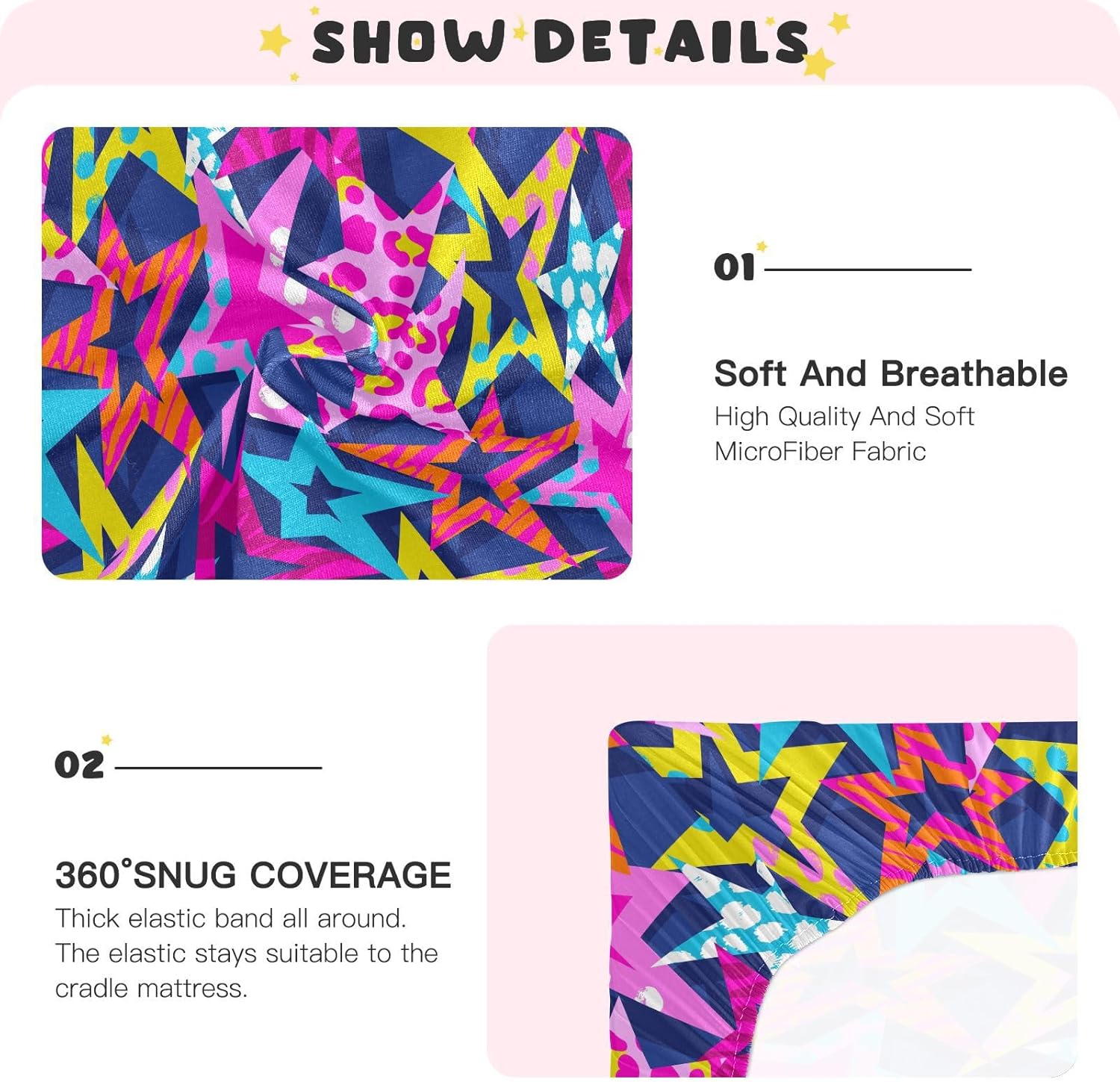 【Premium Material】:Gbjiemia crib sheets are made from high-quality imitation cotton modal, consisting of 95% polyester and 5% spandex. This blend ensures that our baby bassinet sheets are soft, breathable, and skin-friendly, providing optimal comfort for your little ones while they sleep or play