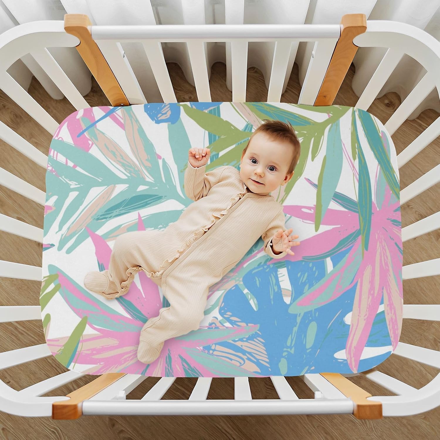 【Premium Material】:Gbjiemia crib sheets are made from high-quality imitation cotton modal, consisting of 95% polyester and 5% spandex. This blend ensures that our baby bassinet sheets are soft, breathable, and skin-friendly, providing optimal comfort for your little ones while they sleep or play