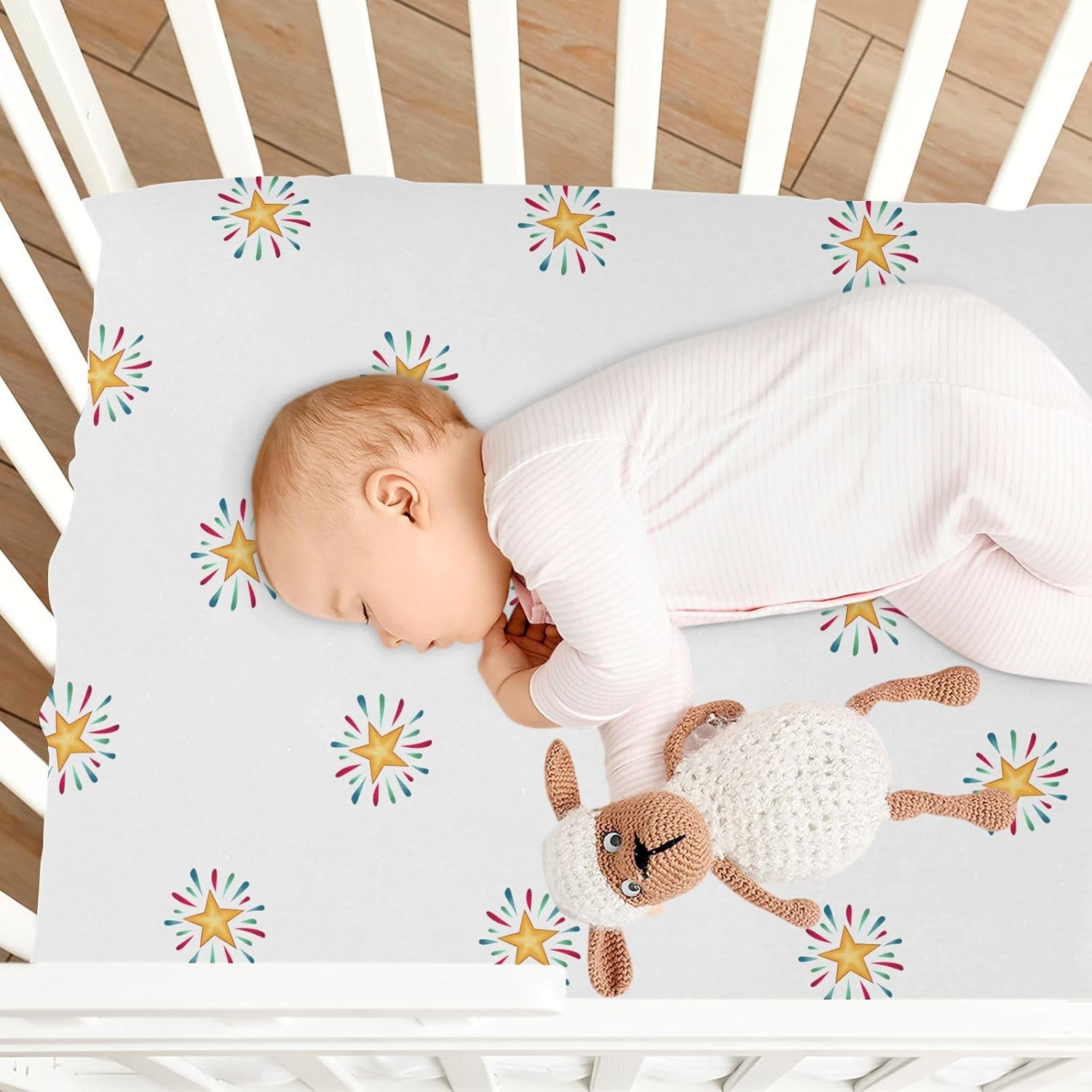 【Premium Material】:Gbjiemia crib sheets are made from high-quality imitation cotton modal, consisting of 95% polyester and 5% spandex. This blend ensures that our baby bassinet sheets are soft, breathable, and skin-friendly, providing optimal comfort for your little ones while they sleep or play