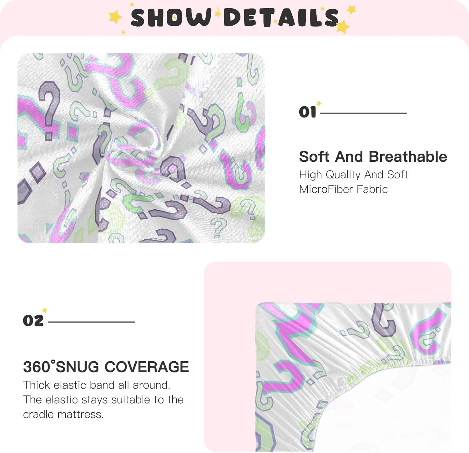 【Premium Material】:Gbjiemia crib sheets are made from high-quality imitation cotton modal, consisting of 95% polyester and 5% spandex. This blend ensures that our baby bassinet sheets are soft, breathable, and skin-friendly, providing optimal comfort for your little ones while they sleep or play