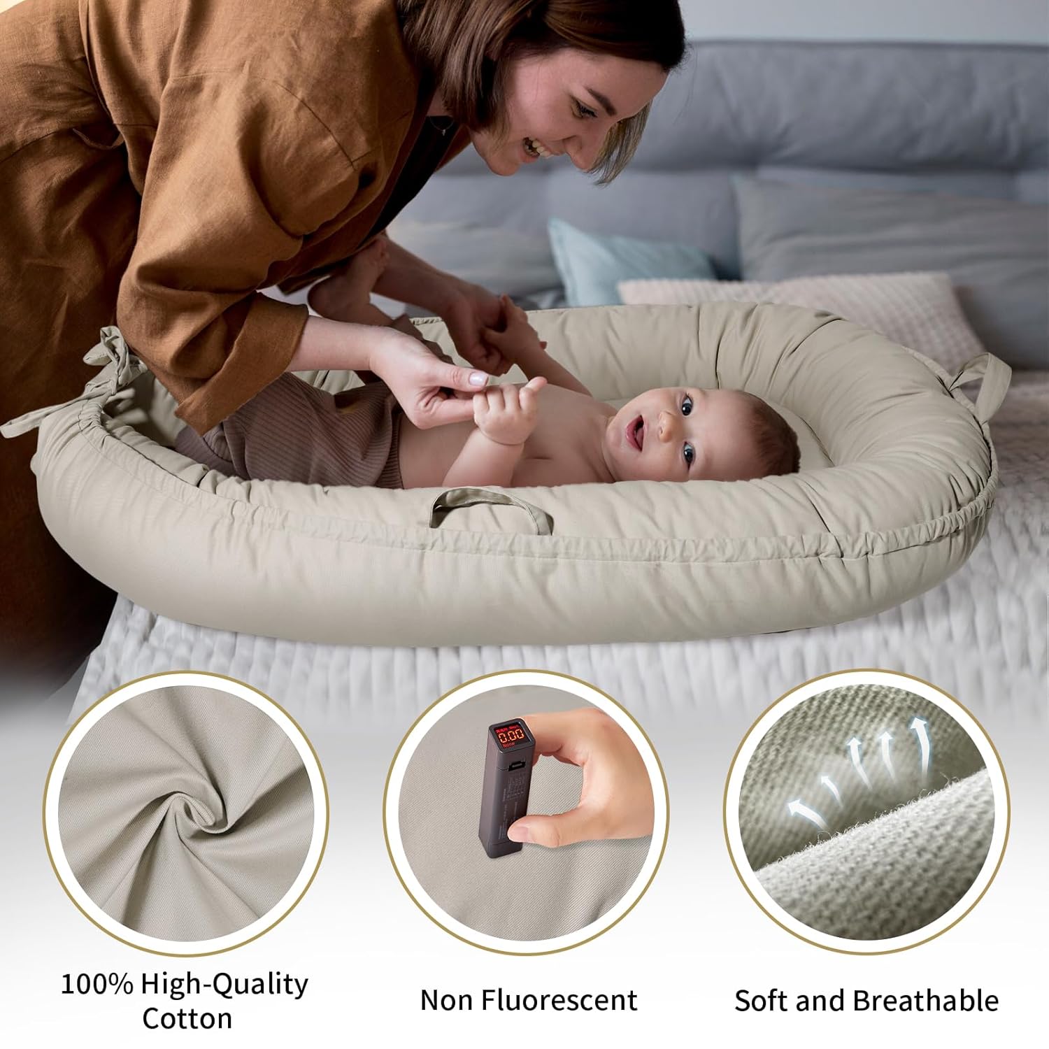 【Easy to Clean & Parent-Friendly】Always use this baby lounger under parental supervision to ensure your baby’s safety. Designed for convenience, it’s machine washable and easy to maintain, keeping it fresh and ready for every use. A practical and stylish gift choice, it’s perfect as a co sleeper in bed or a baby nest for daily use, offering new parents a reliable and hassle-free solution.