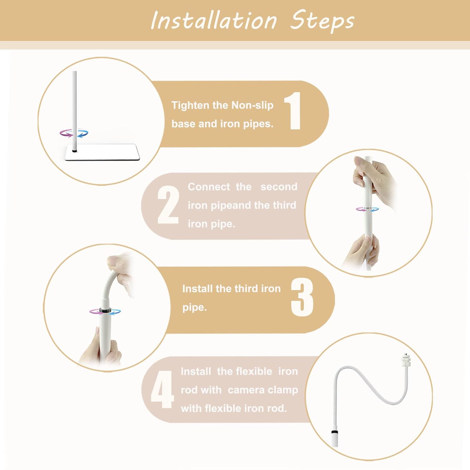 【Adjustable Height and Angle】The baby monitor mount comes with height adjustment ranging from 25.5 inches to 67 inches (you can assemble different iron tubes as needed). The flexible gooseneck arm bends in any direction, allowing you to easily adjust the angle for the best view of your baby