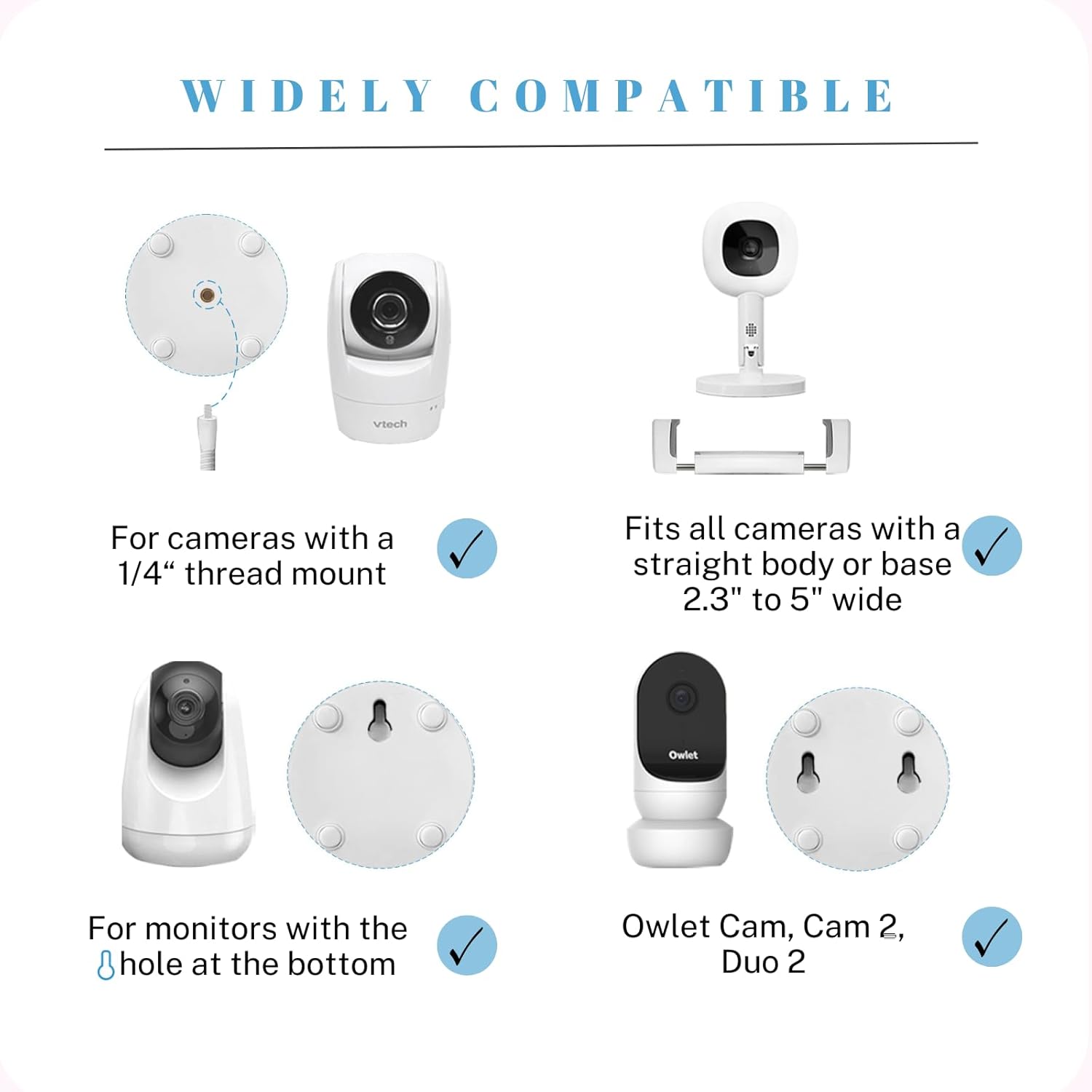 【WIDE COMPATIBILITY】 This baby camera mount fits Infant Optics DXR-8 / DXR-8 Pro, Owlet Cam/Cam 2 /Owlet Duo 2, Arlo Baby Monitor, Motorola, Nannio Monitor, Eufy, VTech Baby Monitor, and any other baby monitor cameras with a 1/4″ threaded mount.
