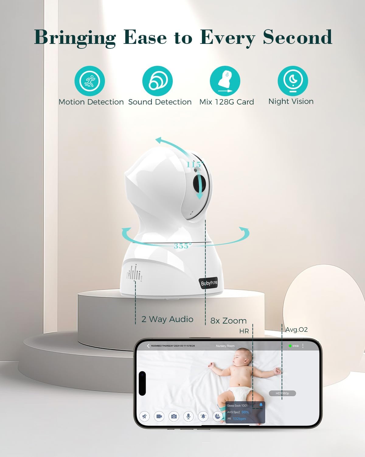 【APP Saves Every Precious Moment】 Customize thresholds for heart rate and discomfort reminders to receive instant notifications. View historical sleep data and playback HD videos on the free APP to track your baby’s growth