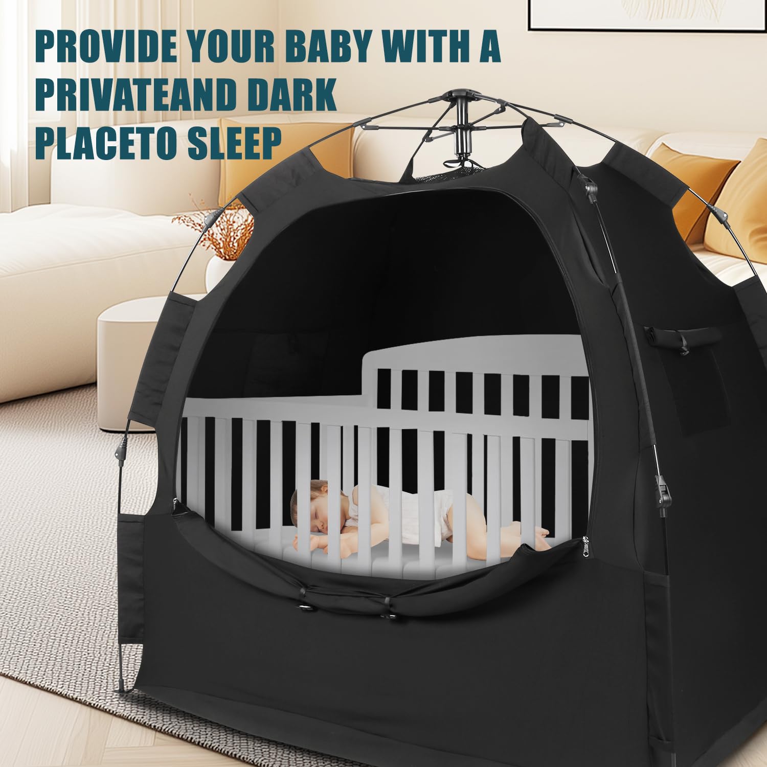 Create the Perfect Sleep Environment: Our Baby Sleep Pod is designed to block out 95%+ of light, creating a dark, cozy, and peaceful sleep environment. Ideal for babies sensitive to light, it ensures uninterrupted sleep during both day and night. It also prevents pets from disturbing your baby and stops them from climbing out of their crib.