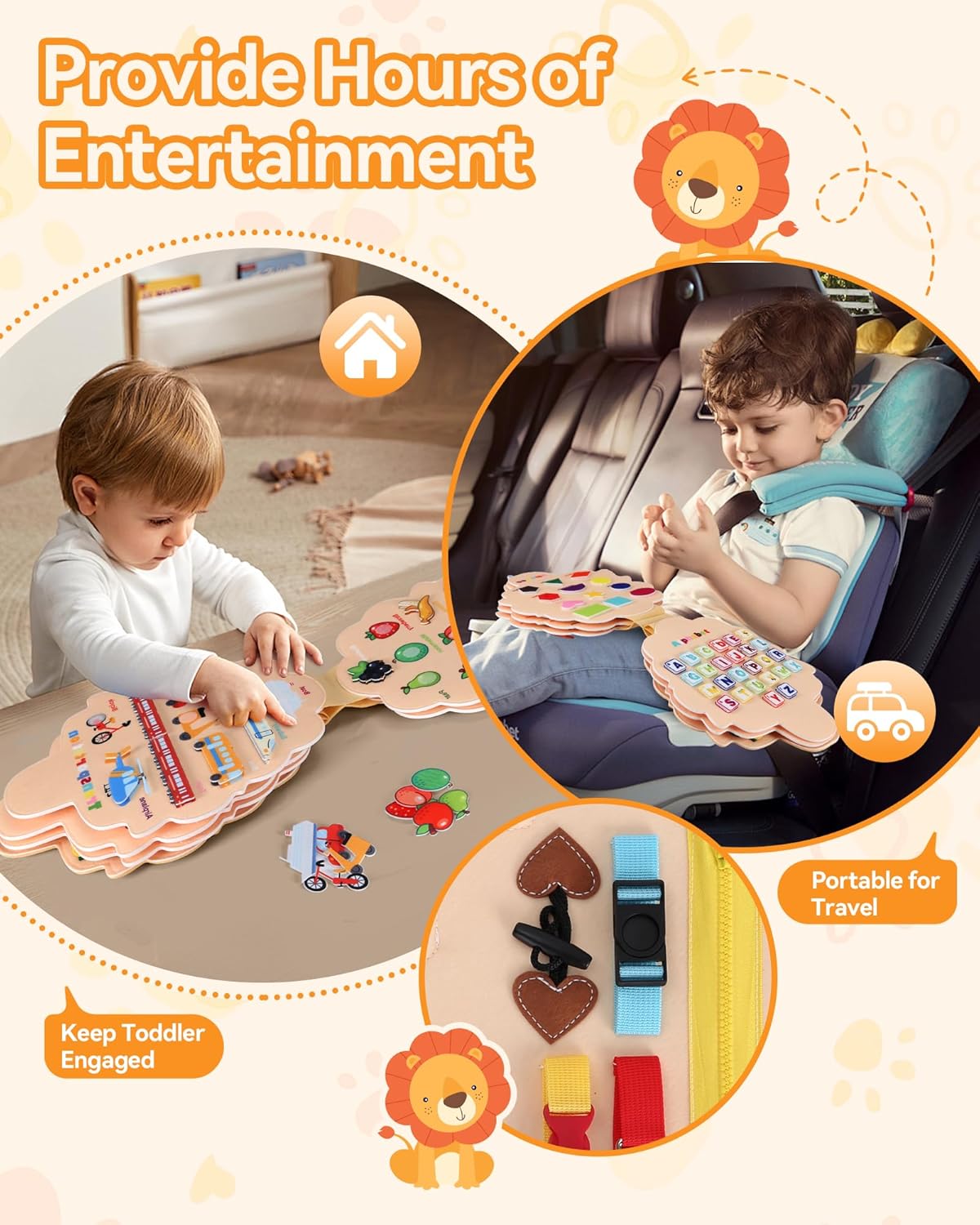 Perfect Gift Idea: With its unique cute lion shape and various learning activities, our busy board can easily attract children’s attention. It is a perfect idea for girls and boys as a Birthday, Easter and Christmas gift.
