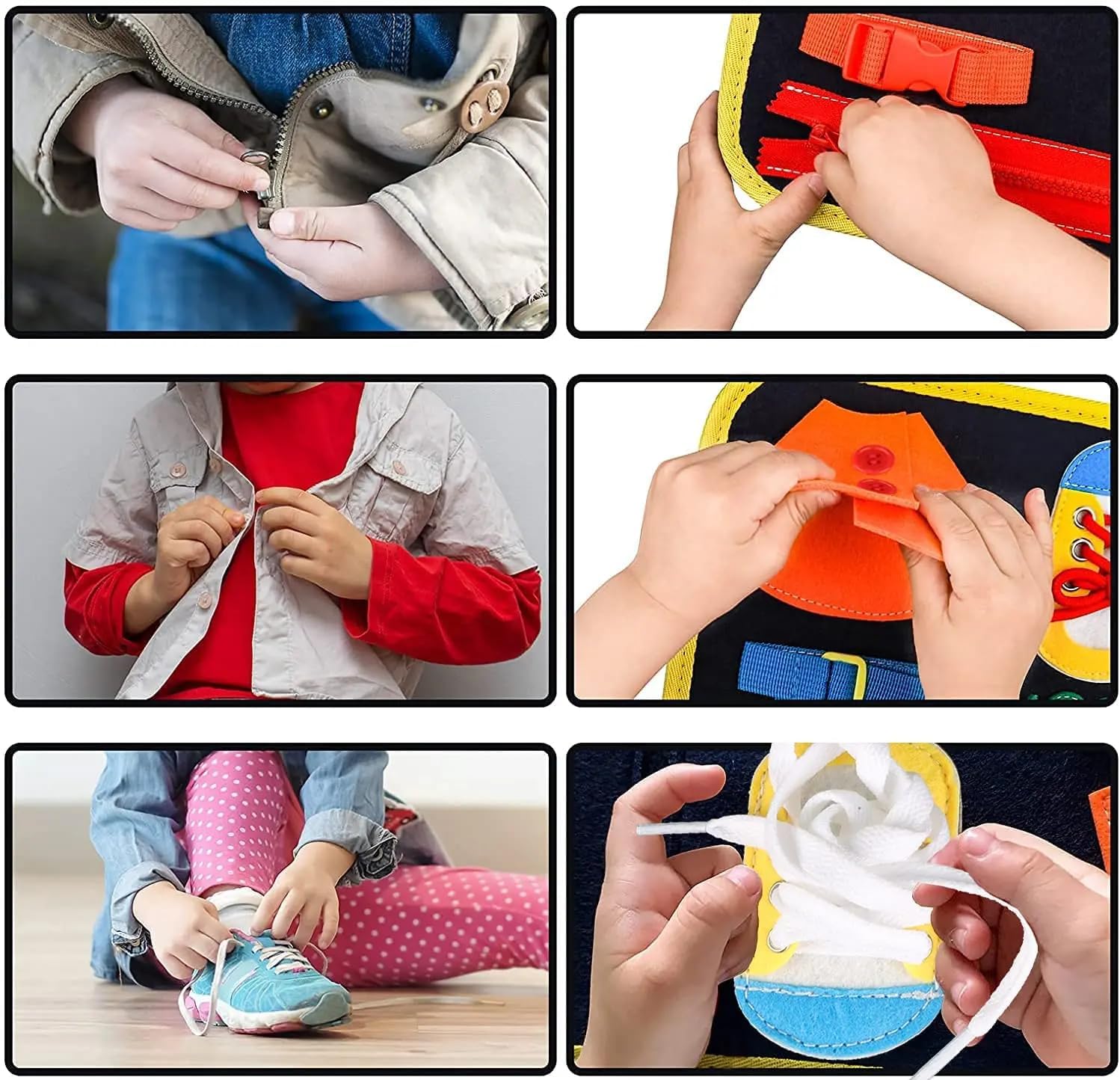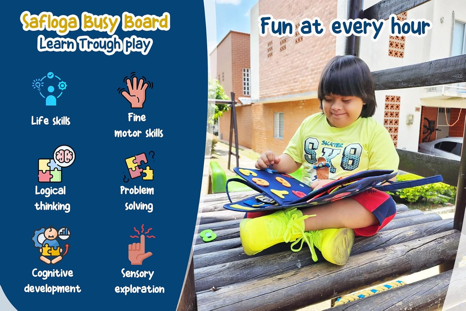 ALL-IN-1 TOY: Our sensory Busy Board helps children learn naturally and fun. zippers, shoelaces, buttons, belt buckles, alphabet, numbers, the time. Additional gift to learn to add and subtract.