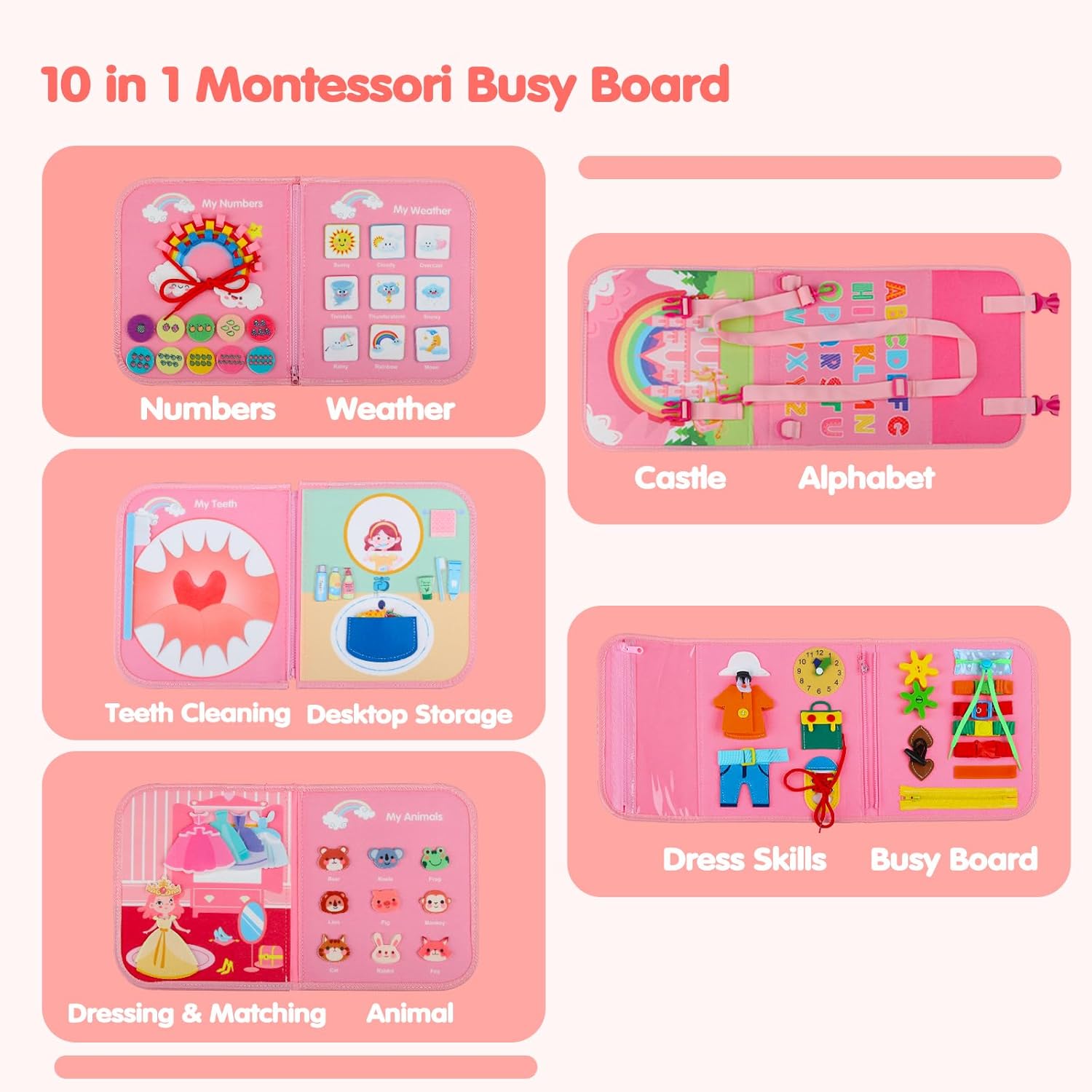 Be the first to review “Busy Board Montessori Toys for 1 2 3 4 Year Old Girl Birthday Gift, Preschool Educational Activities Busy Book for Learning Fine Motor & Life Skills, Toddler Sensory Travel Toys for Airplane Car(Pink)”