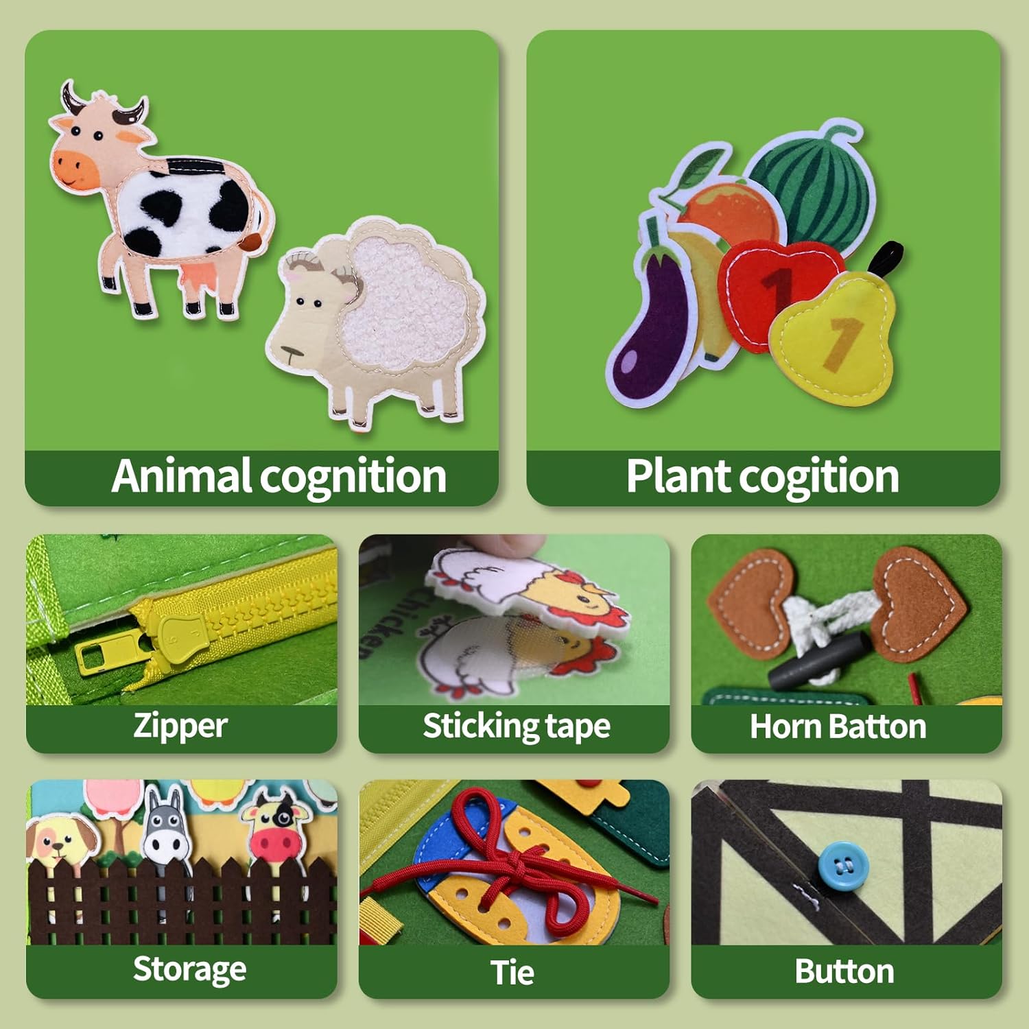 🎁𝟐𝟎-𝐢𝐧-𝟏 𝐌𝐨𝐧𝐭𝐞𝐬𝐬𝐨𝐫𝐢 𝐅𝐚𝐫𝐦 𝐁𝐮𝐬𝐲 𝐁𝐨𝐚𝐫𝐝: Unleash endless Montessori-inspired learning with our 20-in-1 Farm Busy Board! This multi-functional board offers 20 engaging activities across 10 pages, filled with various mechanisms designed to improve hand-eye coordination, fine motor skills and encourage independent exploration. Ideal for nurturing self-confidence and curiosity, this interactive board empowers children to grow through hands-on experiences, laying the foundation for lifelong learning.