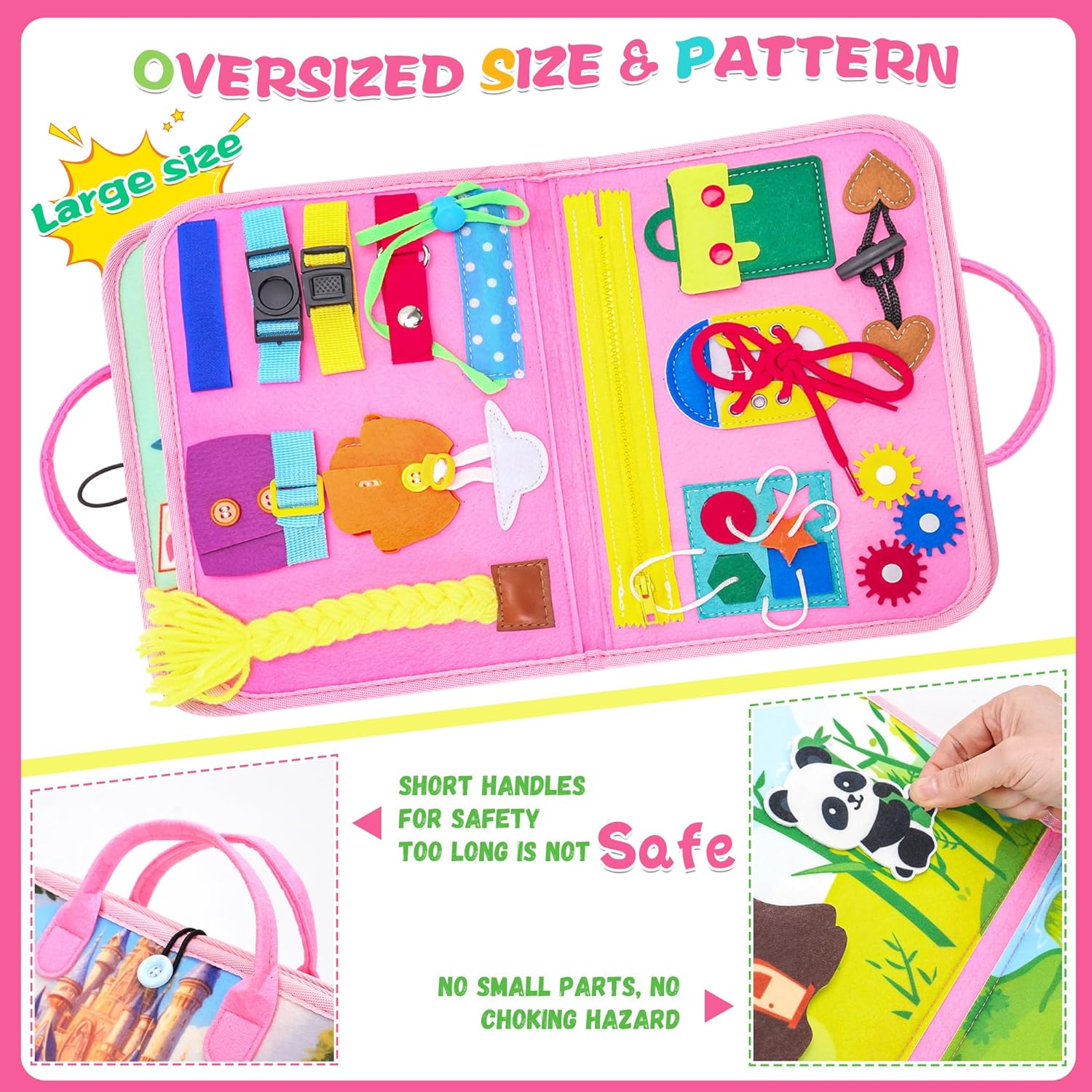 【Oversized Size & High Quality】 Our pattern is bigger, more convenient for toddlers to grasp with their little hands, more safer to avoid accidental choking hazards. This toddler travel toy is made of non-toxic fabric and felt with no hard edges. The strong bond makes it durable and not easy to fall off. This busy books for 1 year olds has passed the USA children’s product certificate test.