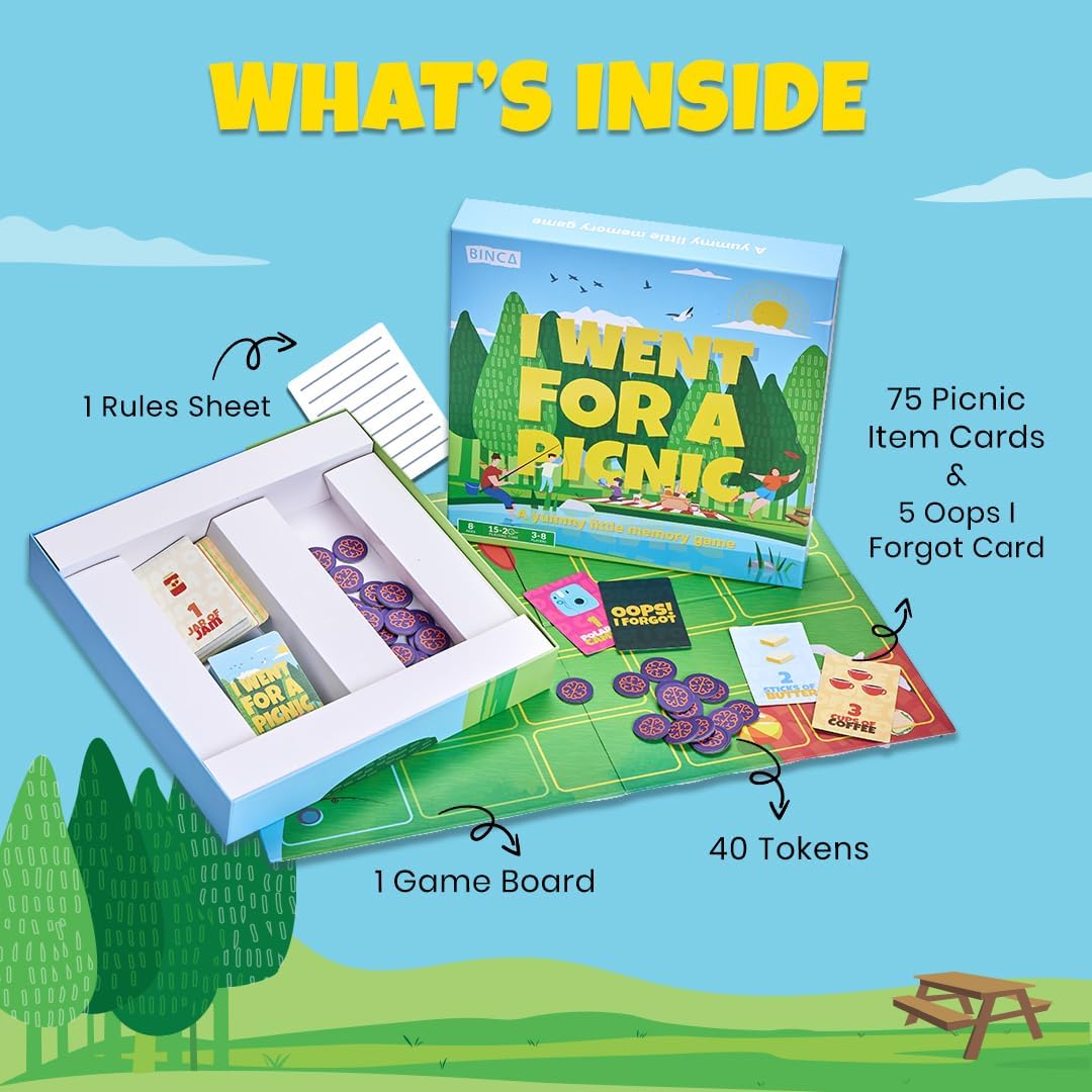 WHAT’S INSIDE: Each set includes 1 Game Board, 75 Picnic Item Cards, 5 Oops I Forgot Cards, 40 Tokens & a Rules Sheet. Find a flat playing surface & get ready for a thrilling brain game and follow the instructions given on the box on how to play for playing the right way for maximum fun and learning. Perfect for family game night! Suitable for ages 6+ and ideal for a minimum of 2 players.