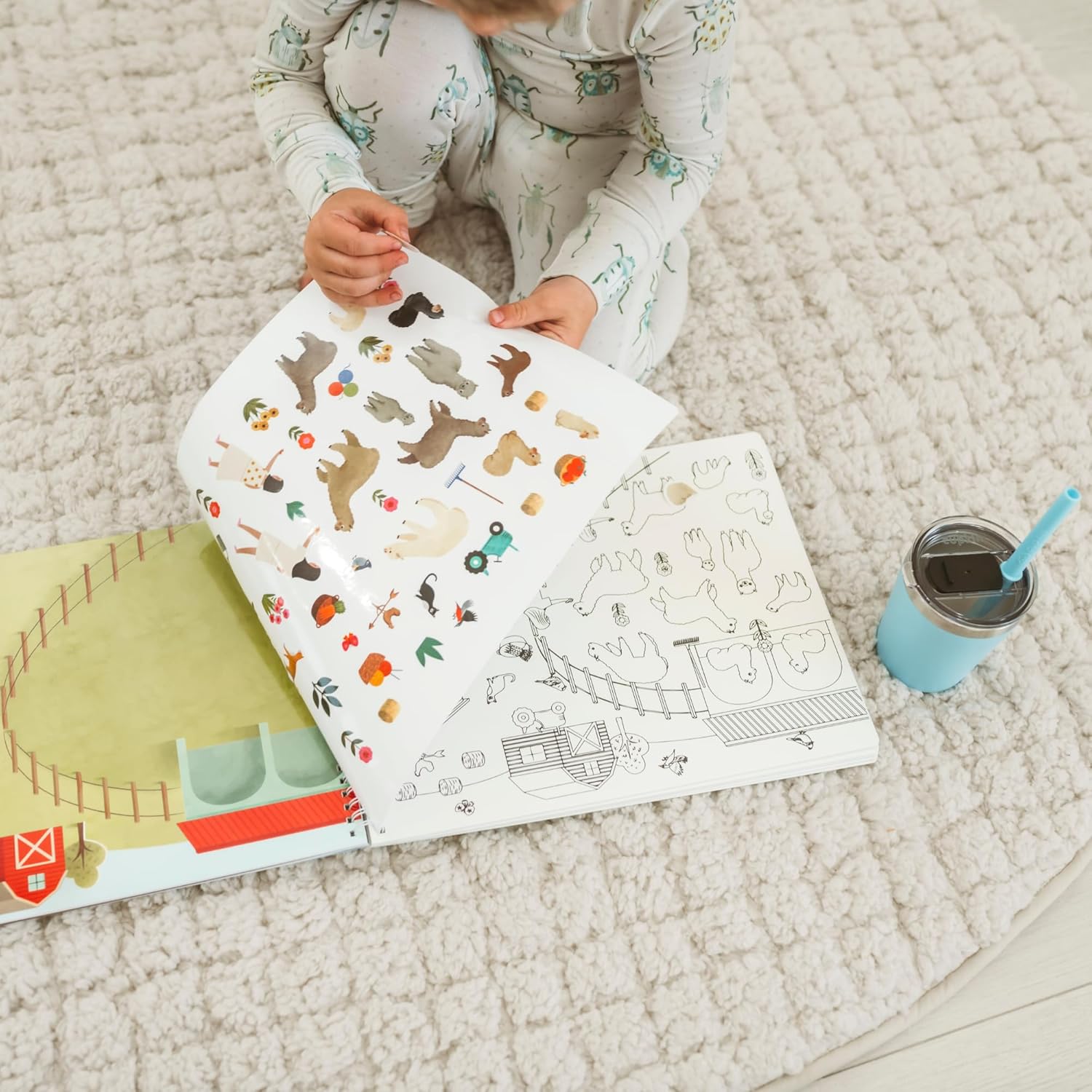 What’s included: Our Farm Animals Sticker Book contains 500+ stickers to place on 12 unique scenes, and 12 coloring book pages all hand-drawn by our artists! Perfect for kids 3-5, the farm animal sticker book includes scenes with pigs, horses, cows, and other friends on all sorts of exciting adventures around the farm that will ignite the imagination of boys and girls!