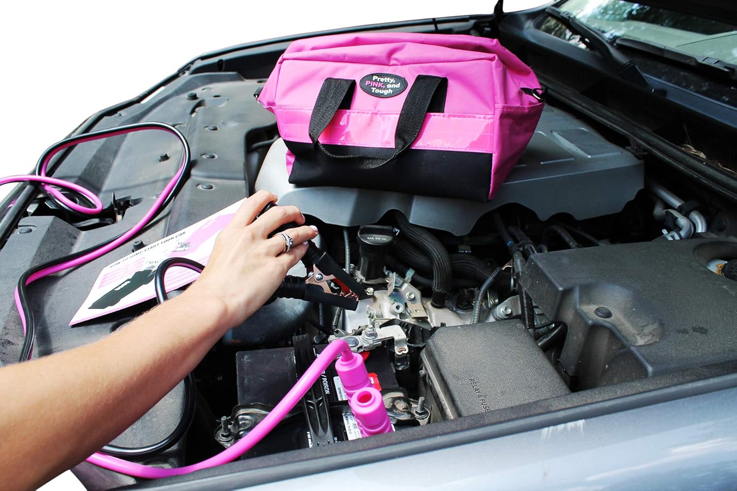 PINK ESSENTIAL EMERGENCY ROADSIDE KIT– Stay safe and stylish with the Pretty Pink Roadside Kit. Be prepared for common roadside mishaps with this tough and rugged car emergency kit for women. Be ready for everything from a dead battery to low tire pressure, all with this fabulous pink set.
