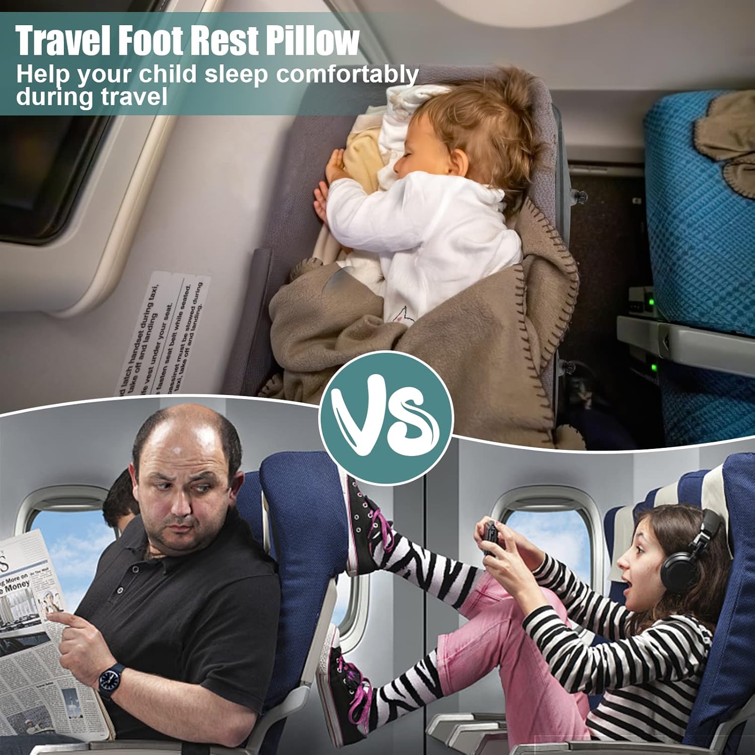【 Suitable for Kids and Parents 】— Portable and lightweight, footrest is airplane travel essentials for parents and children, reducing the fatigue of parents taking care of children. Travel pillow is a good gift for Christmas/New Year’s/Thanksgiving. NOTE: We advise you confirm with the airline in advance as some airlines do not allow airplane footrest.