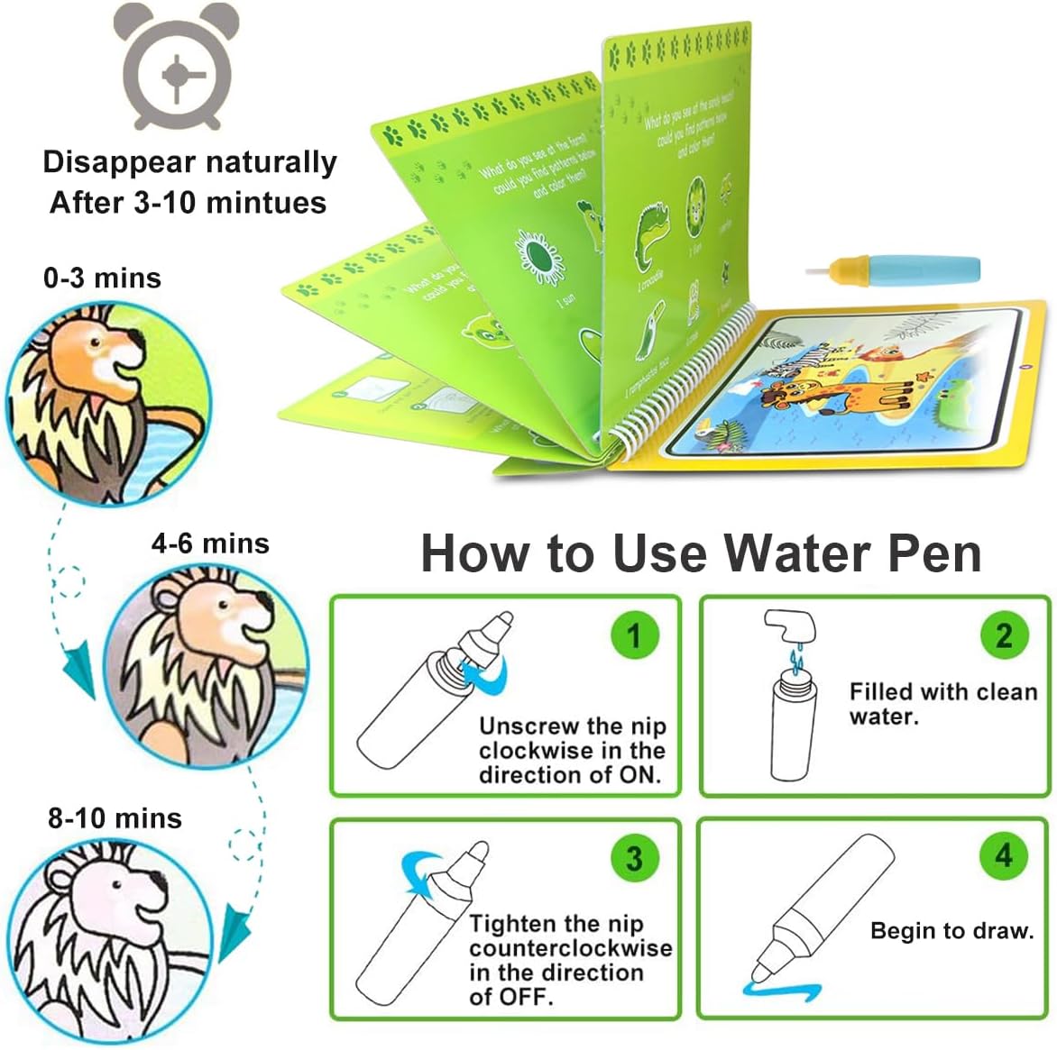 ✍【Mess-free, Stress-free】Children can enjoy coloring and parents can rest easy. Use these booklets anywhere without worrying about ink stains, the doodle will disappear naturally after 3-10 minutes. Anyone can clean up the drop of water.