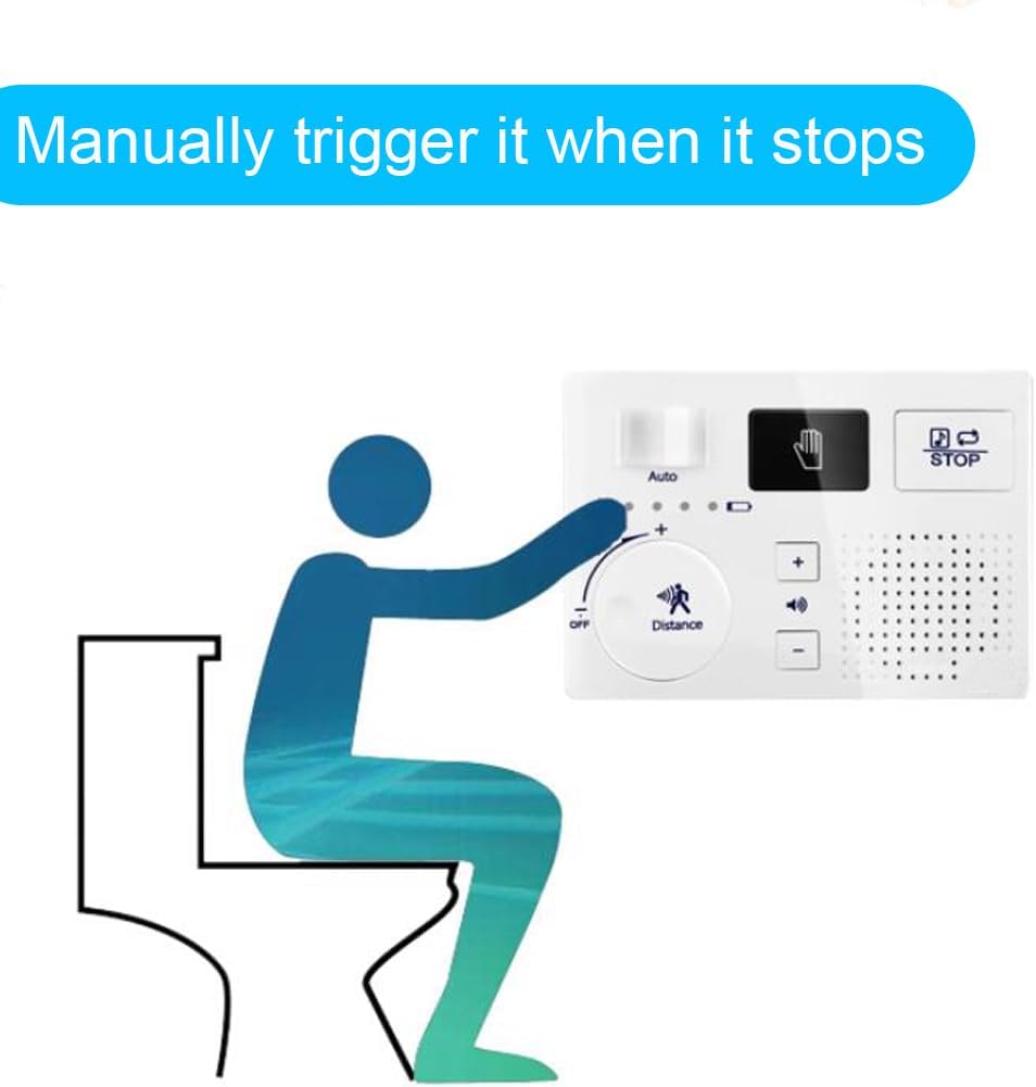 Motion Detected Device – It will play music with the sound of running water when you get close to the toilet. The sound box device comes with four pieces of music songs. Not only can creat little moments of calmness and relaxation, but also mask the sound of bathroom