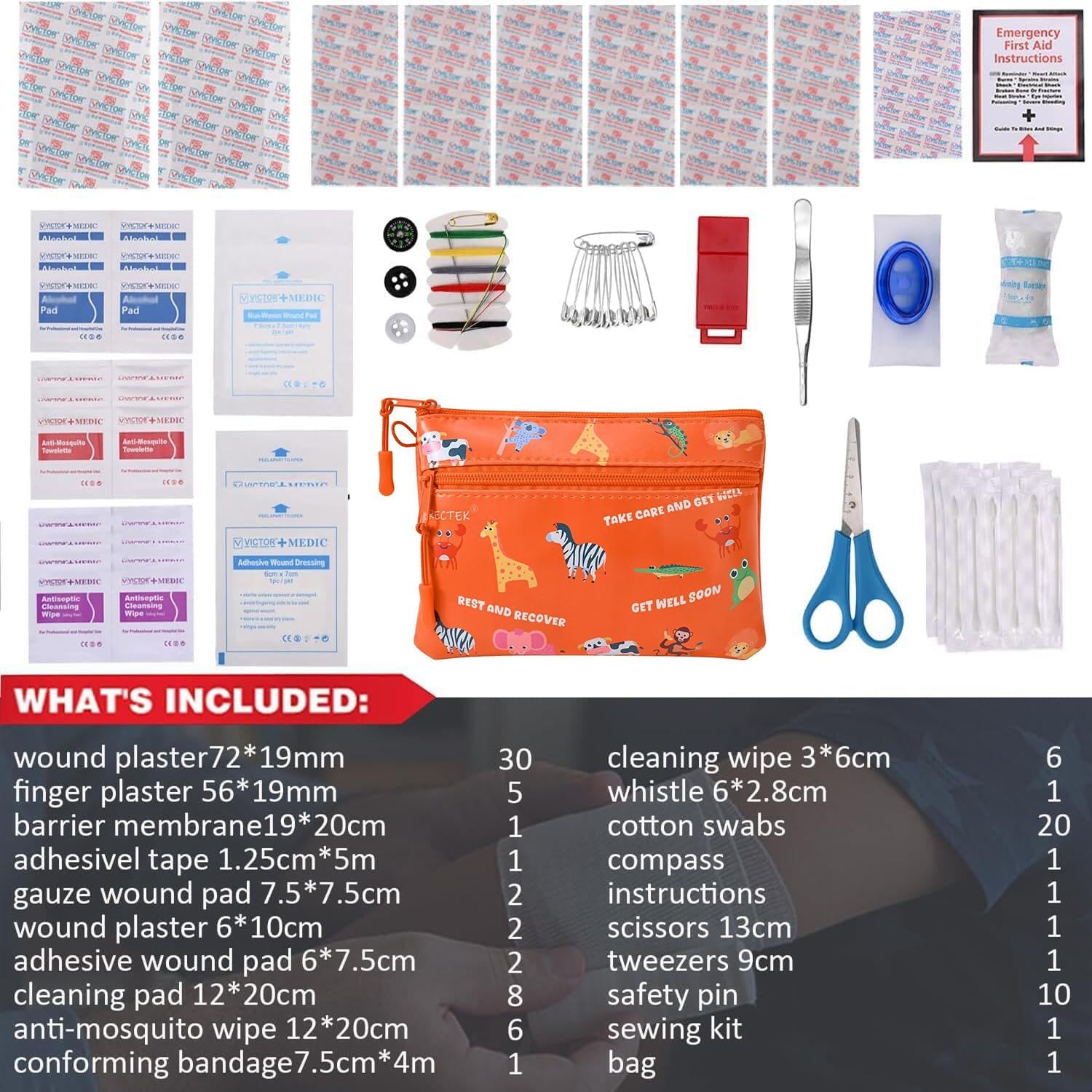 DESIGN: Mini First Aid Kit fits perfectly in your hand, pocket, or travel bag (7.3″ x 5.3″) this basic first aid kit weighs only 0.44 pound and features a compact, travel-friendly design.