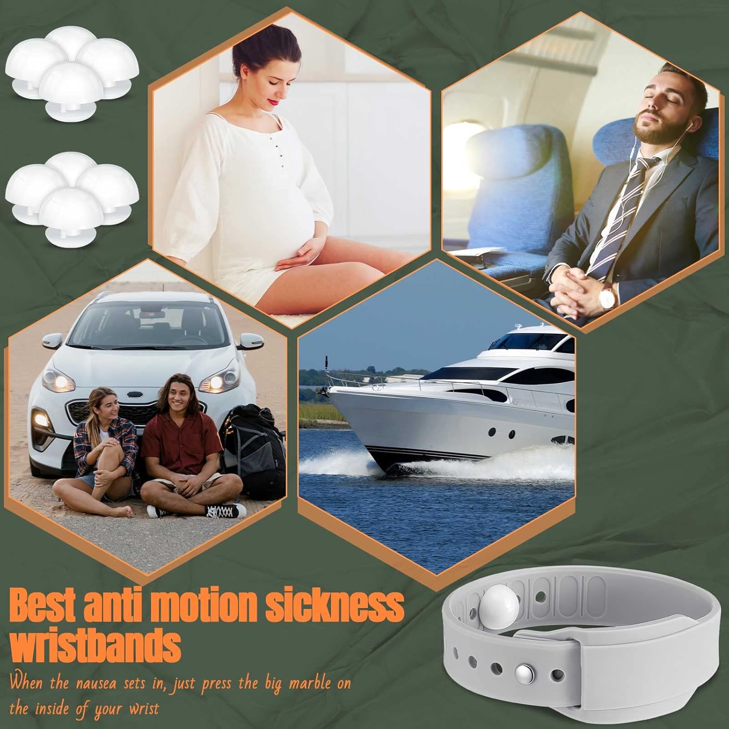 Practical Function to Relief Motion Sickness: the function of anti motion sickness bracelet is to apply pressure to acupoints on the wrist through plastic studs, thereby restoring the balance of the body and bringing you comfort; It can relieve nausea caused by air sickness, sea sickness and more