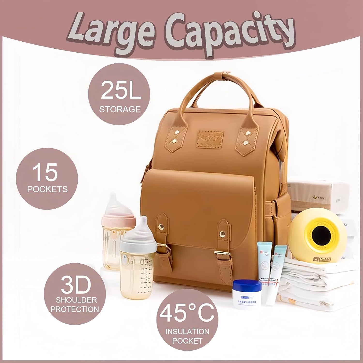 Ultra-Large Capacity: With a spacious 25L capacity and 15 compartments, this baby backpack diaper bag keeps all your baby essentials perfectly organized. It also fits a 13-inch laptop and clothing for short business trips