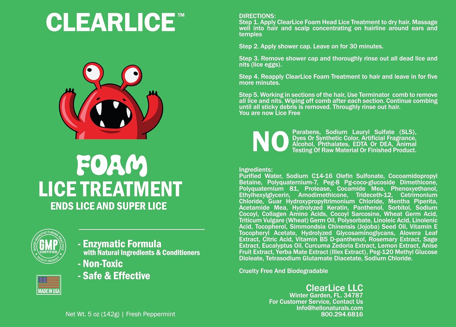 Complete Treatment Kit: Each Clearlice package includes a 5oz foam treatment, a professional-grade terminator lice comb, and a shower cap. This comprehensive kit provides everything you need for effective lice removal in one go.