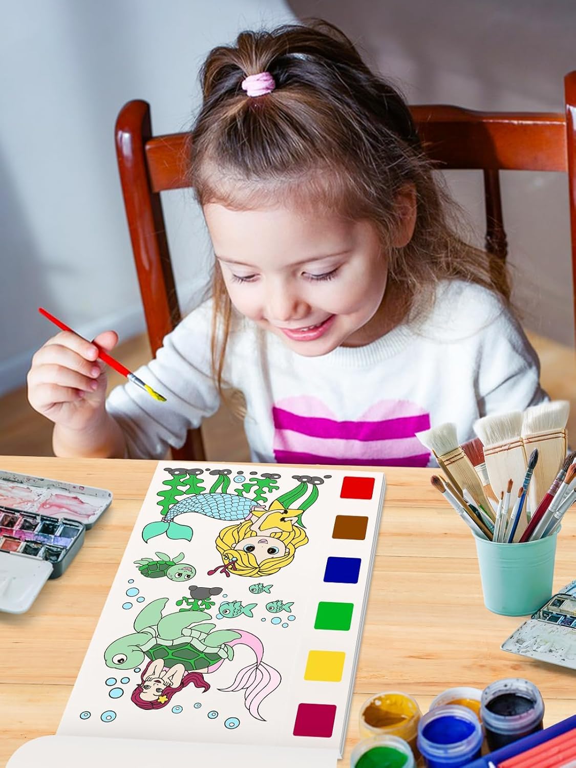 Perfect Gift for Kids: Lorvain watercolor painting coloring books set designed for kids Aged 3-12 years old boys and girls. It is perfect for little beginners to start their painting and will be a great birthday party gift, travel coloring kit , class reward, class treasure chest, art supplies, christmas gift, etc.