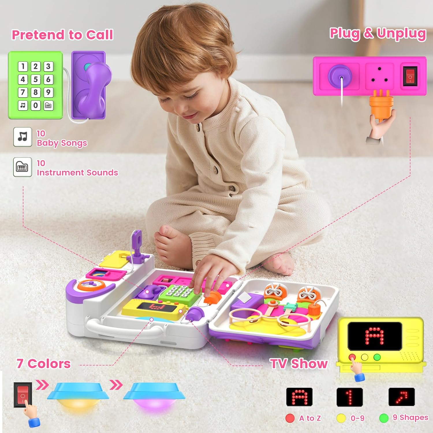3 in 1 Montessori Toys 1+ Year Old: Our toddler busy board for 1 year old is designed with 3 sides including a variety of interactive activities such as doors, windows, clock, safe, TV, telephone, tissue box, socket, twisting, unbuckling, tying shoes, and more. Keep your one year old boy and girl busy and occupied.