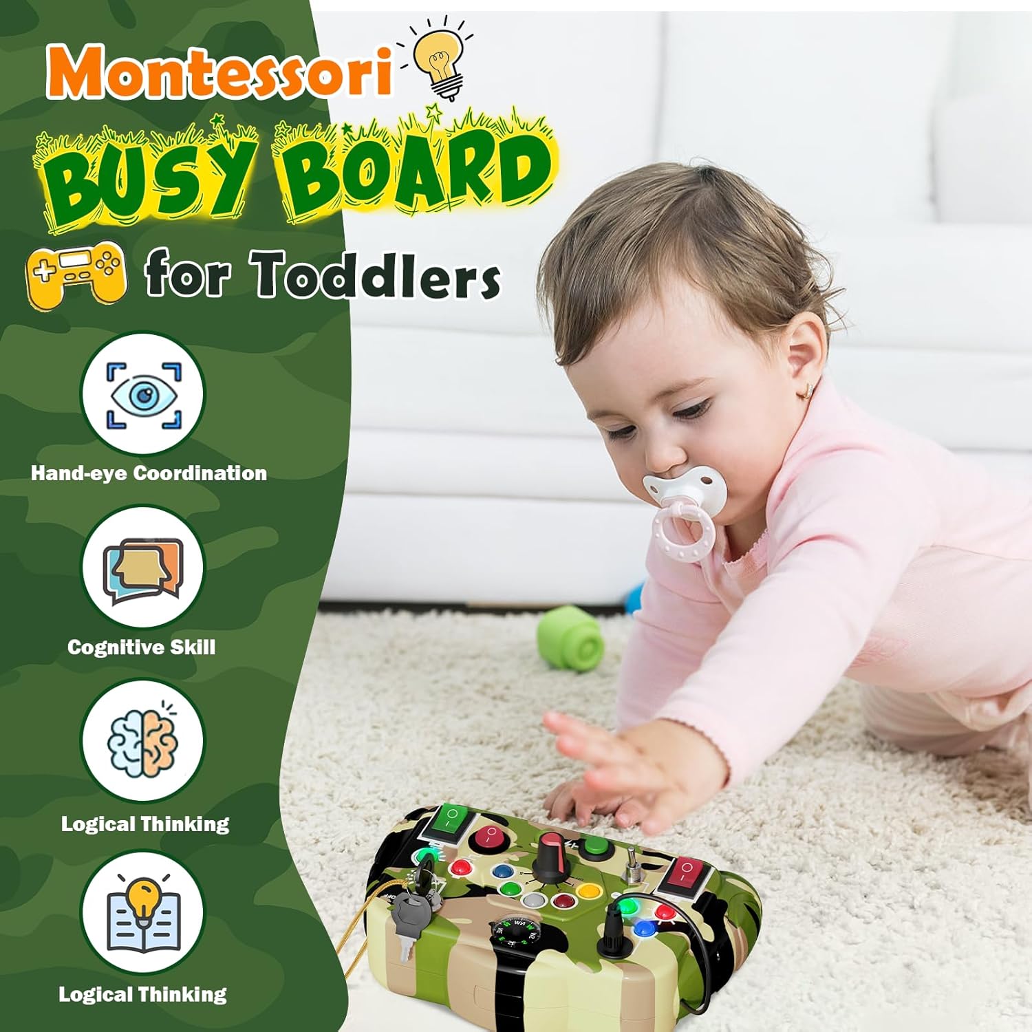 Be the first to review “Montessori Busy Board with Led Light Switch, Sensory Montessori Travel Board for Toddlers 1-3, Camouflage Theme Toddler Educational Activities Toys Ideal Christmas & Birthday Gift for 1 2 3”