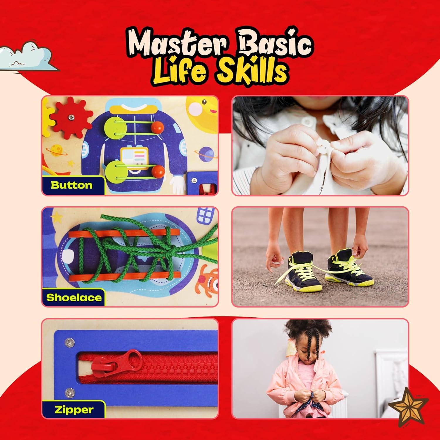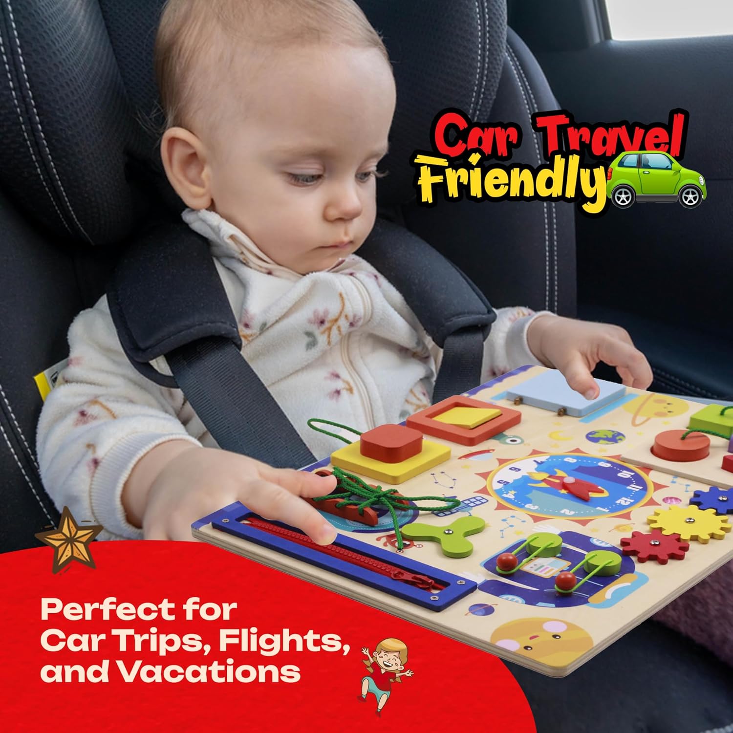 💪 ENHANCES MOTOR SKILLS: Each activity on the activity board is carefully crafted to improve your child’s fine motor skills, hand-eye coordination, and problem-solving abilities. Our travel busy board offers a fun way to build essential skills like writing, drawing, and buttoning clothes.