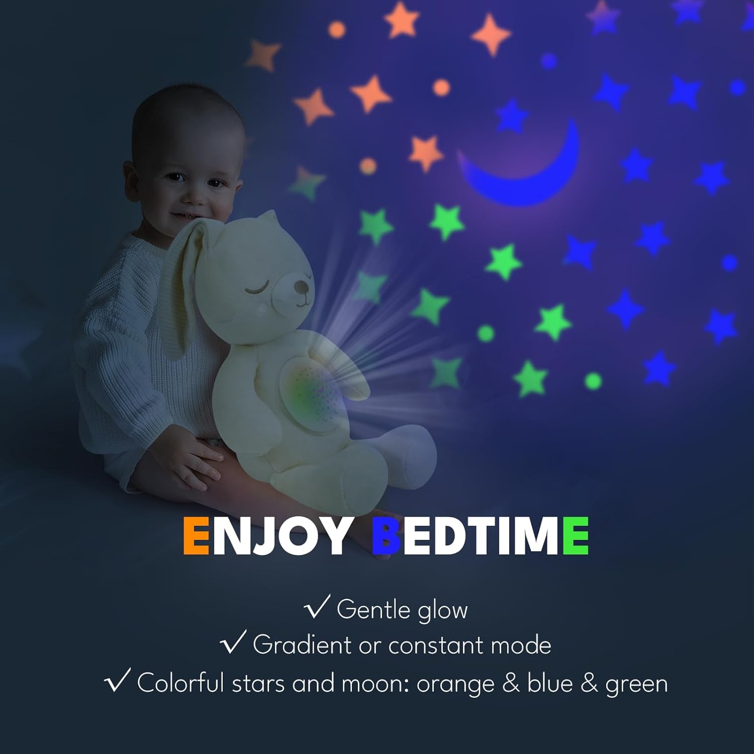 SWEET DREAMS EVERYWHERE:2-in-1 baby sleep soother is detachable and portable, it’s not only a musical stuffed animal, but also a baby sleep sound machine. From car seat to stroller walks, from crib to family trips, our cuddle baby noise machine can be a good companion wherever you go!