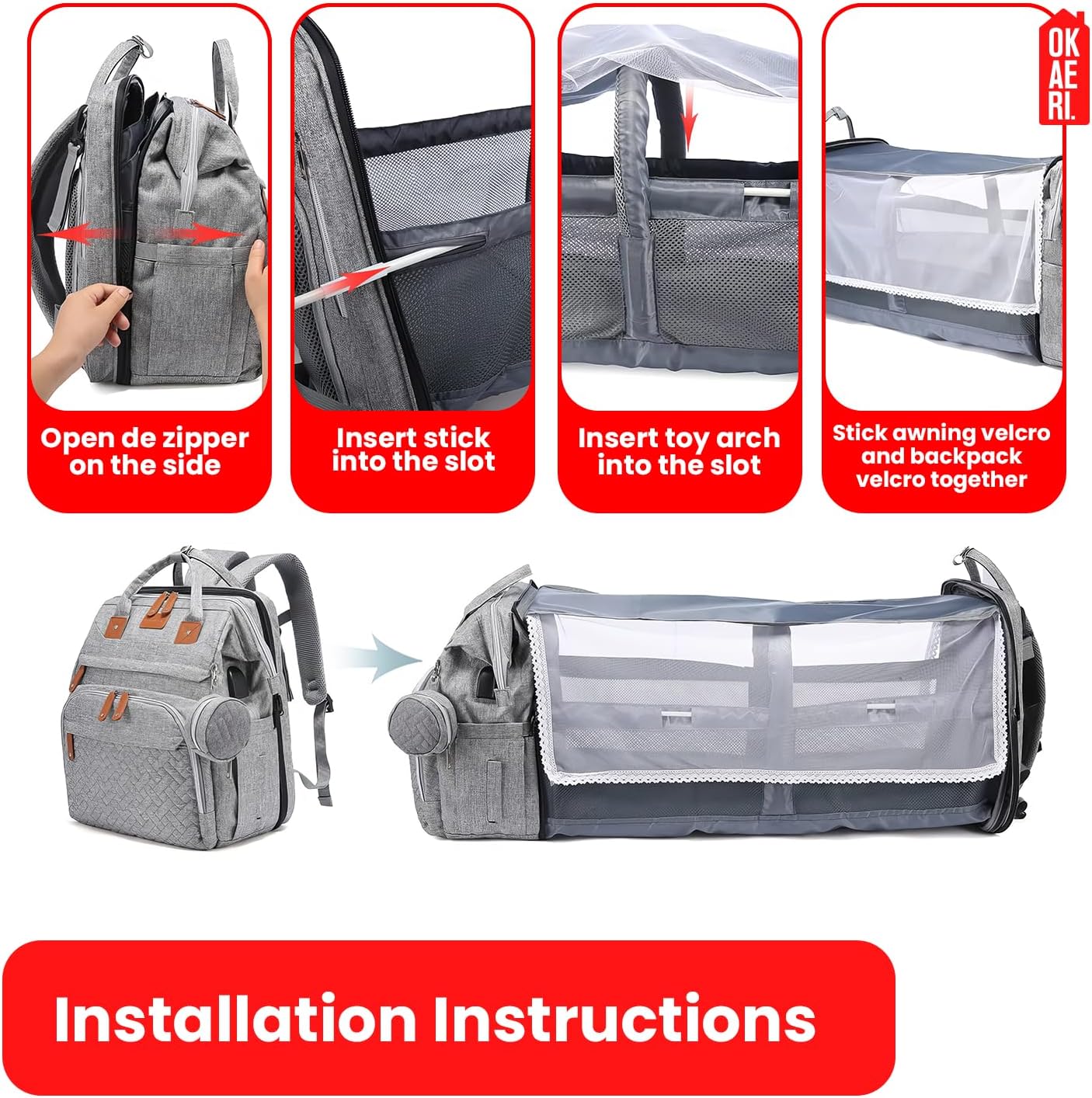 This versatile diaper backpack is the ultimate companion for parents on-the-go, goes beyond storage, offering a neat and hygienic changing station for your little one. Whether it’s time for a diaper change or a cozy nap in the sun, the built-in soft pad and pillow ensure comfort, while the shading cloth protects your baby’s delicate eyes – a haven for babiesIts expandable design allows you to carry everything you need for your little one, from diapers and wipes to toys and snacks. The spacious main compartment features multiple pockets and a safe changing mat, ensuring you can handle diaper changes with ease. With a waterproof exterior and sturdy construction, this backpack is built to withstand the demands of outdoor adventures, shopping trips, and everyday use. The USB port lets you charge your devices while on the move, and the unisex design makes it suitable for both parents. Whether you’re heading to the park, running errands, or traveling, this diaper backpack offers the convenience and organization you need to keep your baby happy and comfortable.