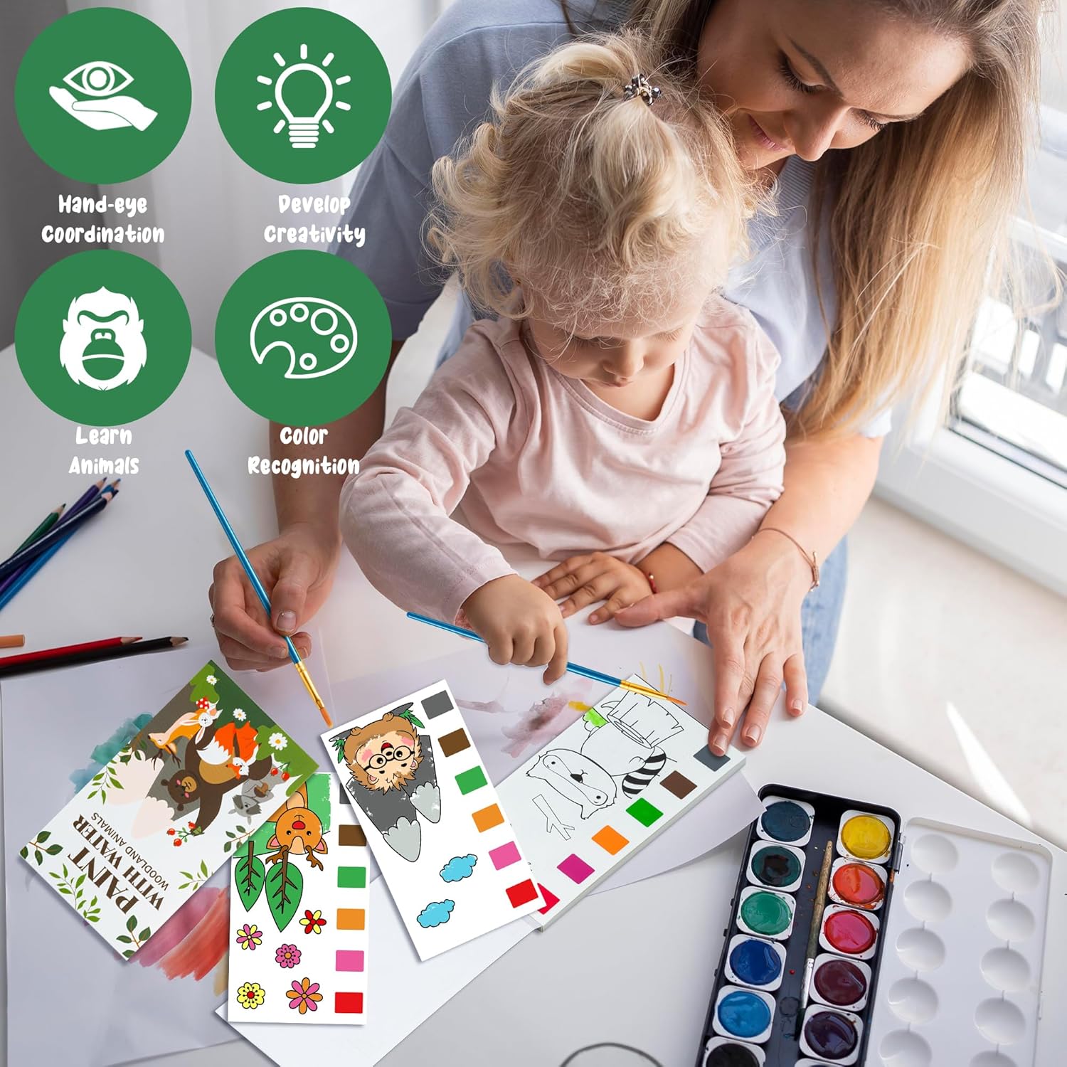 Ideal Gift for Ages 3+: Our paint with water books are not only great arts and crafts gifts for kids as birthday party gifts, class rewards, back-to-school gifts, first-of-school gifts, travel toys, etc. Also is good for beginners to teach them color and promote hand-eye coordination. Kids will have fun with our woodland animal watercolor painting book!
