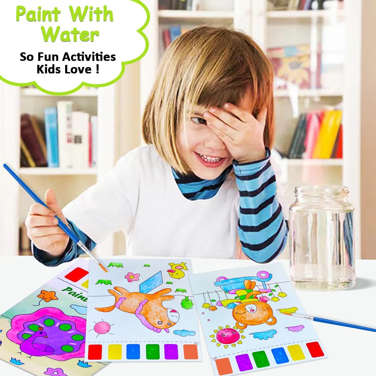 JZILU Watercolor Coloring Book for Kids, Paint with Water