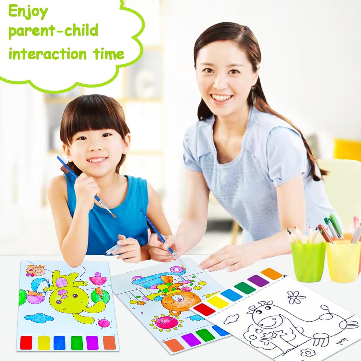 High-quality watercolor paper ensures that the color does not bleed through after painting. Mess free coloring for toddlers