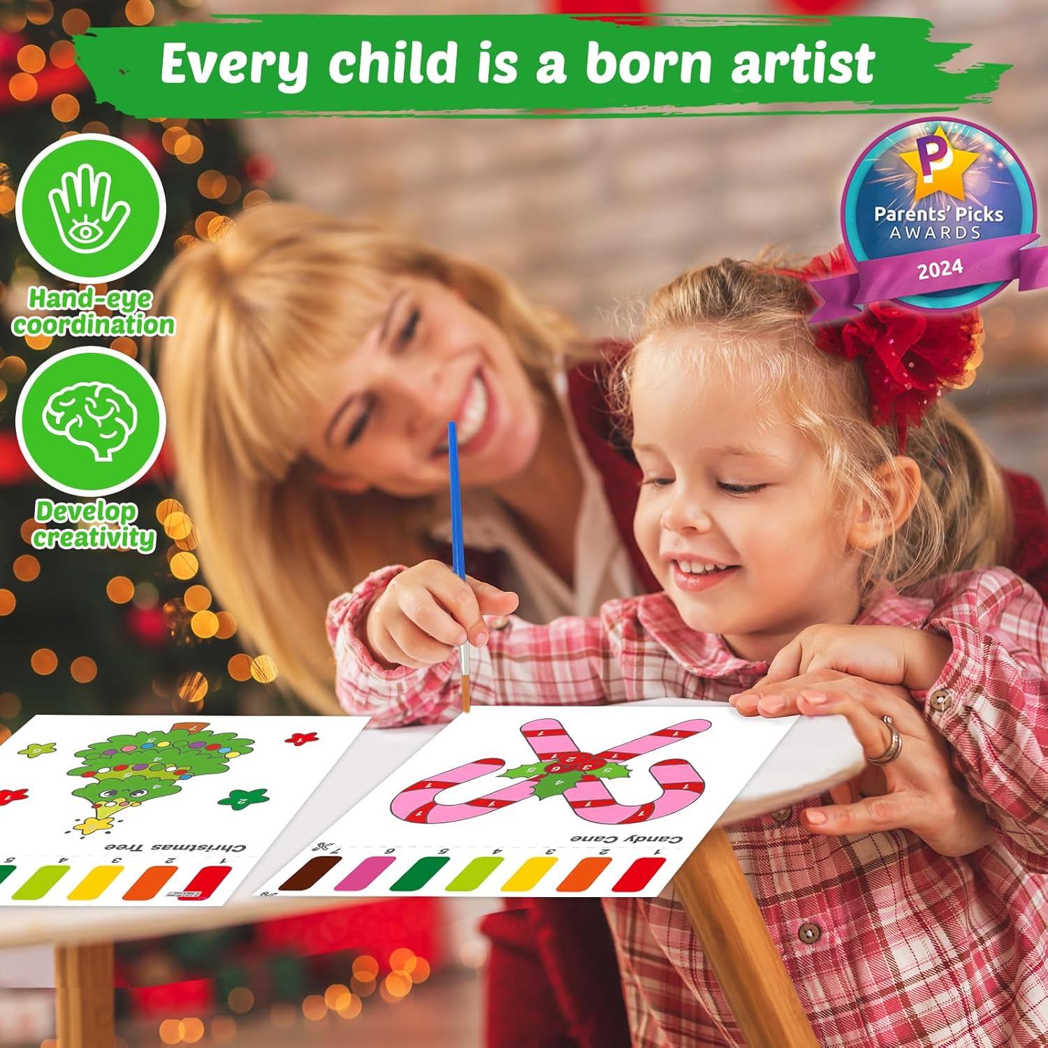 Art & Craft Toys for Fun and Education, This arts and crafts Xmas theme toddler watercolor painting book can cultivate your child’s creativity and color recognition skills. It improves your child’s creative painting ability and hand-eye coordination. It can keep kids away from screens and electronic products and enjoy the fun of painting