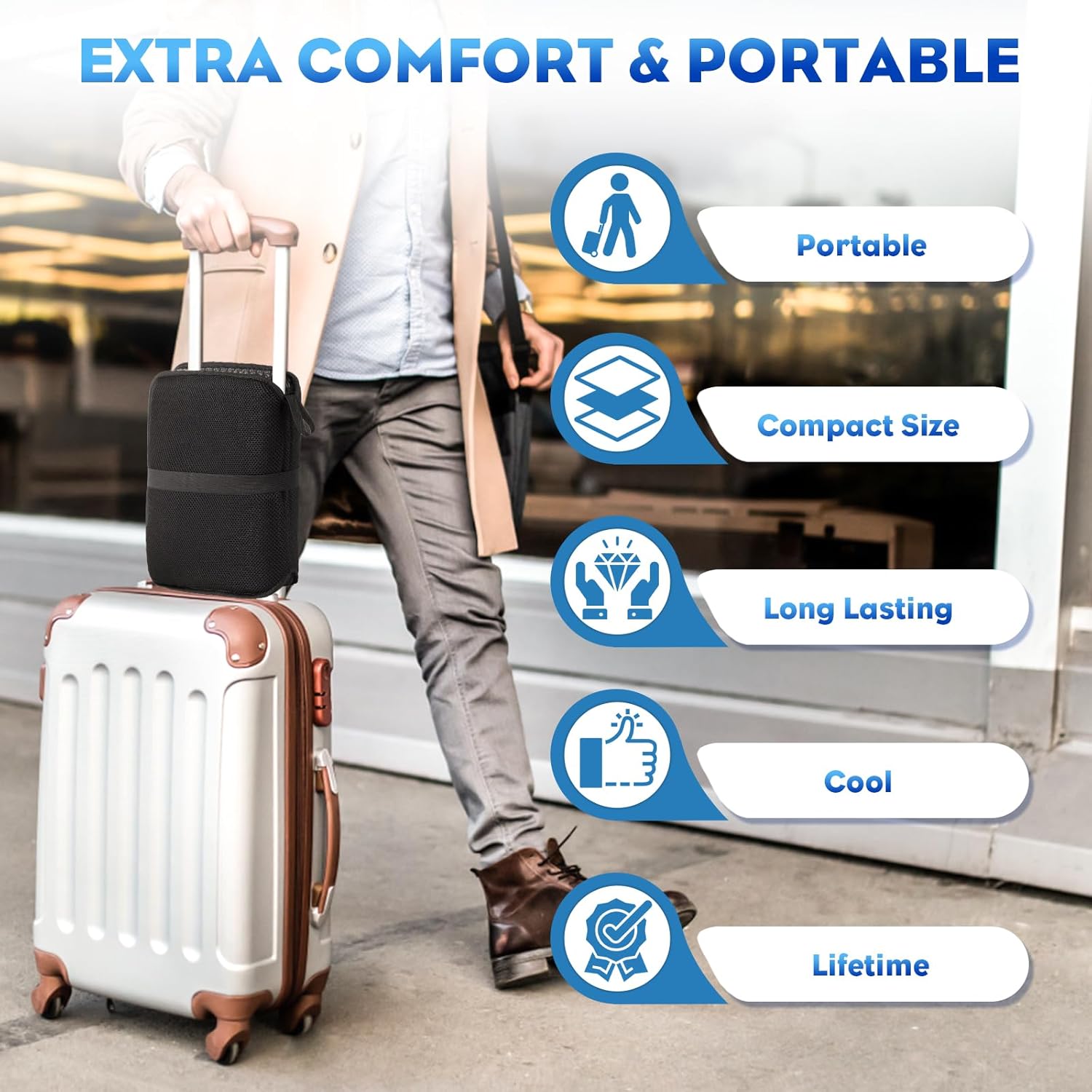 【Long-lasting&Hard to Deforming】: Produced with high-quality materials, our travel seat cushion is not only foldable and portable but also exceptionally durable, designed to withstand the rigors of daily use in various environments, from busy airports to rugged outdoor terrains.
