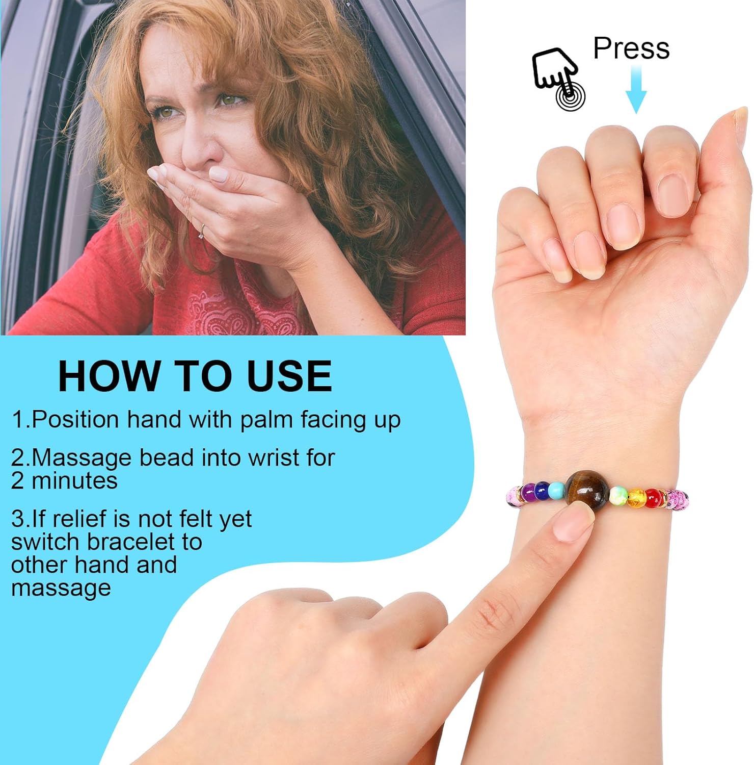 Sureio 6 Pcs Motion Sickness Bands Bracelet Anti Nausea Adjustable Wristband for Cruise Ship Essentials Seasickness Adult