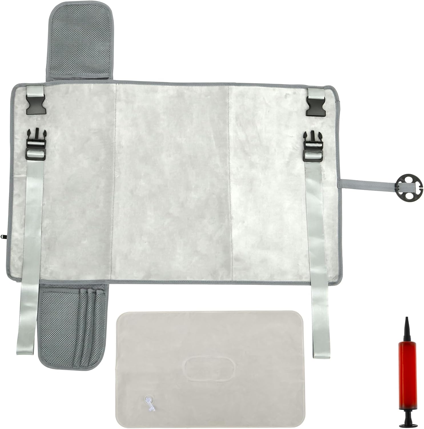 (*^_^*) [Easy to Use] This kids airplane seat extender attaches to the back seat on one side and hangs on the tray table armrests in front of the seat on the other side, the inflatable pillow can be placed inside to make it more comfortable for kids.