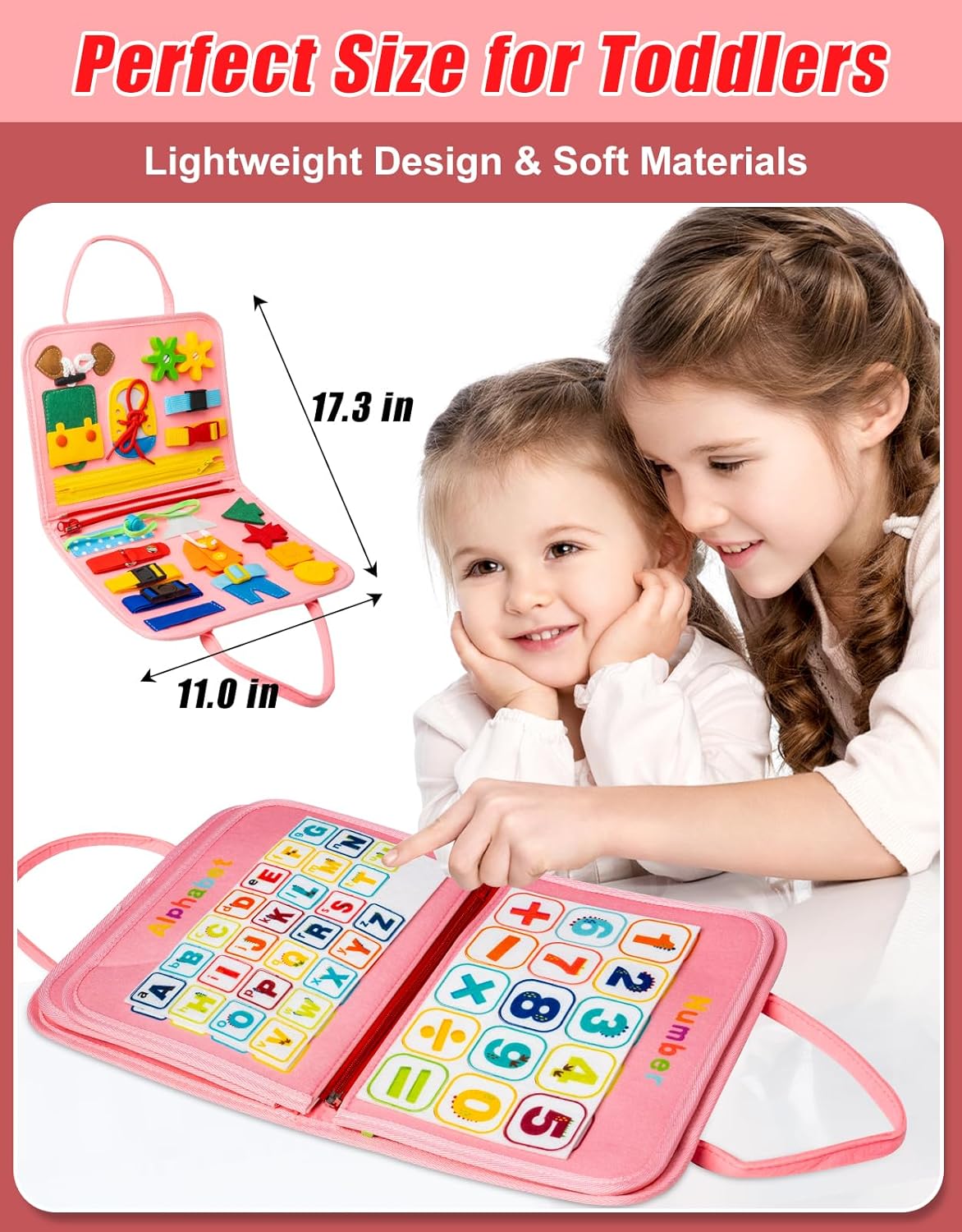 This toddler busy board is a educational toy for 2-4 years old to learning basic life skills.
