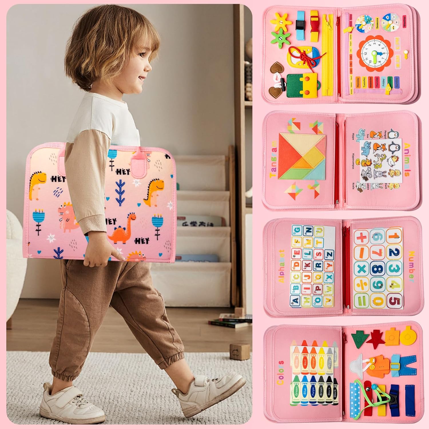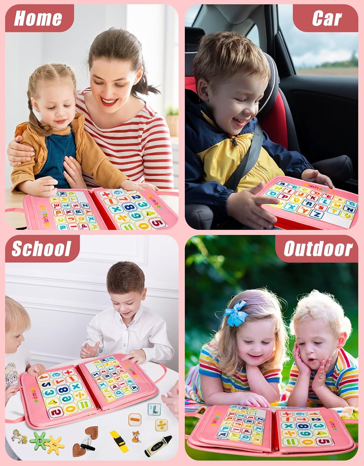 Portable Busy Book: Easy to care, it can be easily packed in a backpack for convenient use during travel, very suitable car activities, puzzle game, home games, indoor activities, airplane activities, toddlers on the go to keep busy and quiet during the long journey. Also a great toy to help autistic children keep busy and quiet