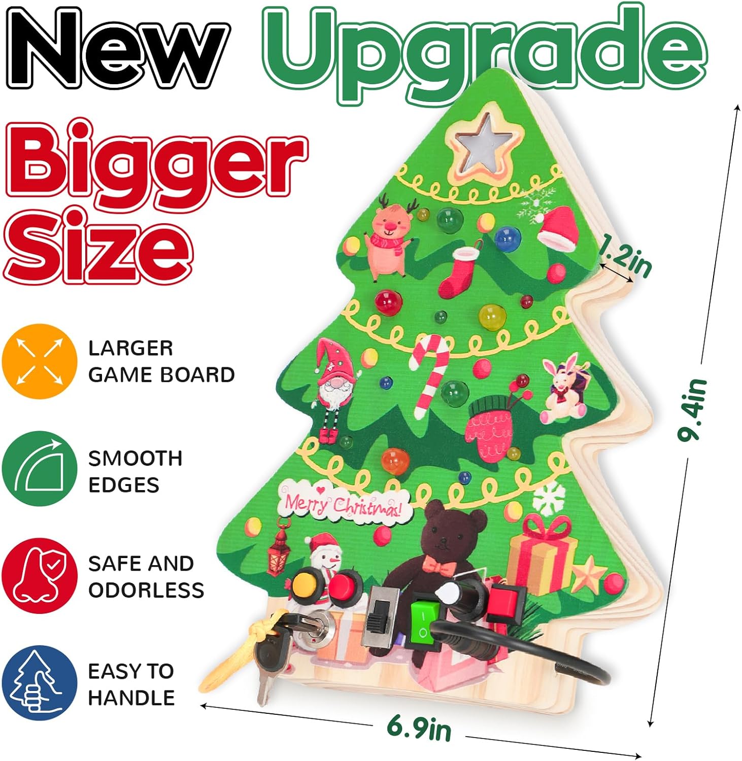 Compact & Portable:Great for home and travel, this Christmas tree Montessori toy is designed with convenience in mind. The busy board with LED light measures 9.4 inches long, 6.9 inches wide, and 1.2 inches high. It’s easy to store and transport, so Children can have fun and learn wherever they go