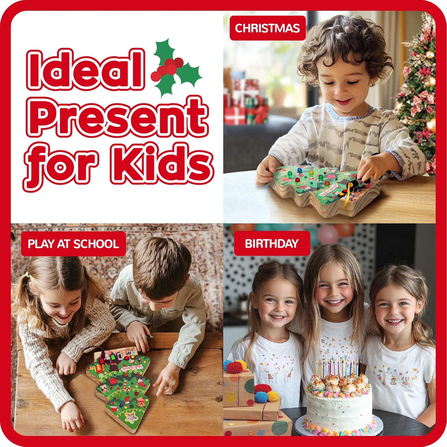 Christmas Design Busy Board:Dive into a world of interactive fun with the christmas tree montessori busy board. This busy board features bright LED lights and unique tree patterns to capture your child’s attention and spark their curiosity. Enhance child’s sensory experience by exploring the glowing buttons, making playtime more engaging