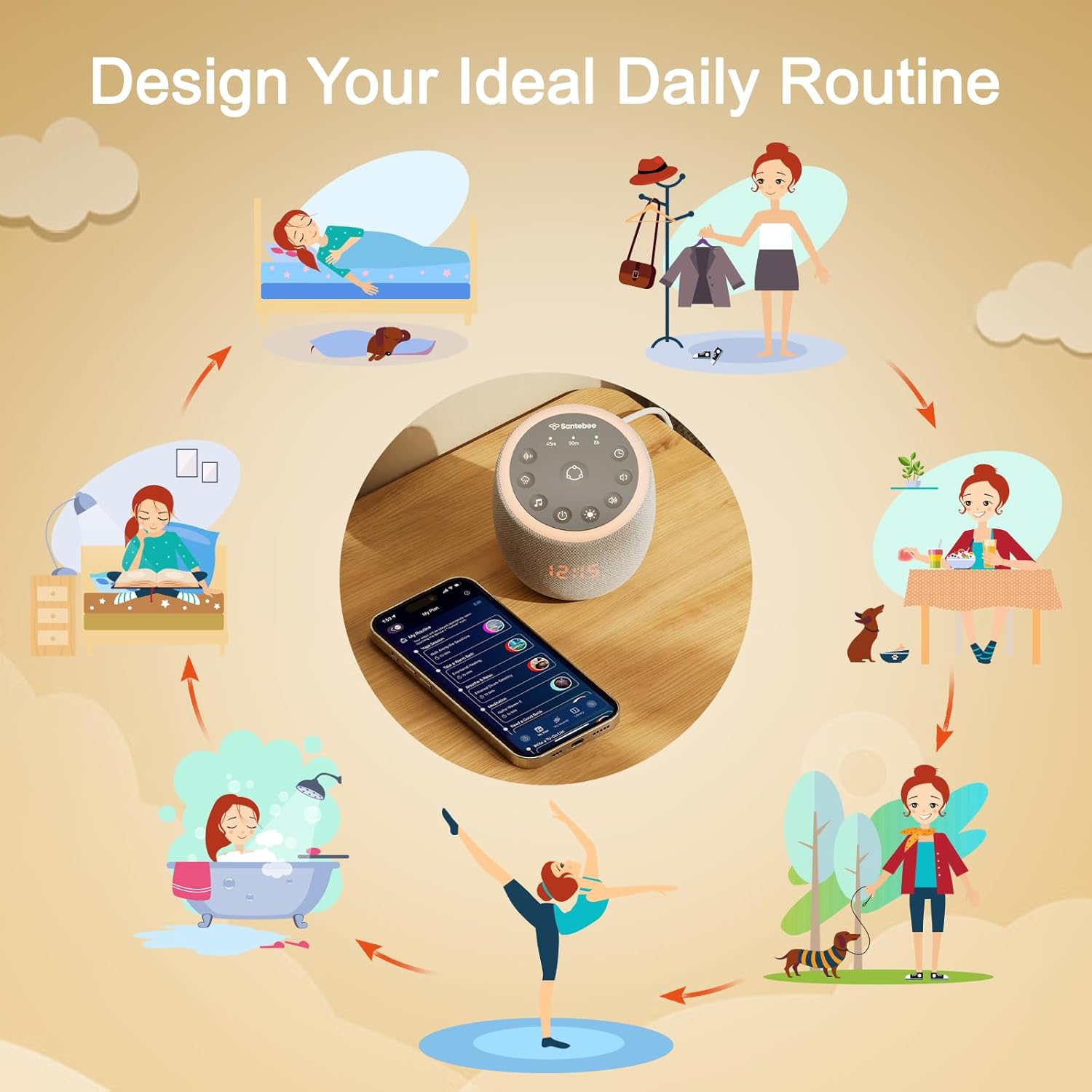 𝐒𝐢𝐦𝐩𝐥𝐢𝐟𝐲 𝐘𝐨𝐮𝐫 𝐒𝐥𝐞𝐞𝐩 𝐑𝐨𝐮𝐭𝐢𝐧𝐞 – With just a single button press, you can start your nighttime routine. Customize your routines with the free companion APP